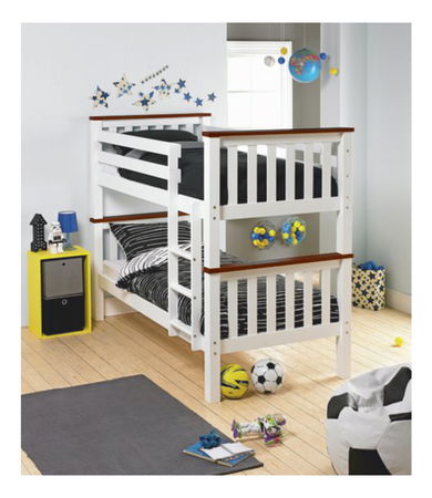 Patrová postel je dodávána s lamelovými rošty a bez matrací. Žebřík lze upevnit na pravé nebo levé straně. Postele se dají rozložit a použít jako 2 samostatná lůžka.
