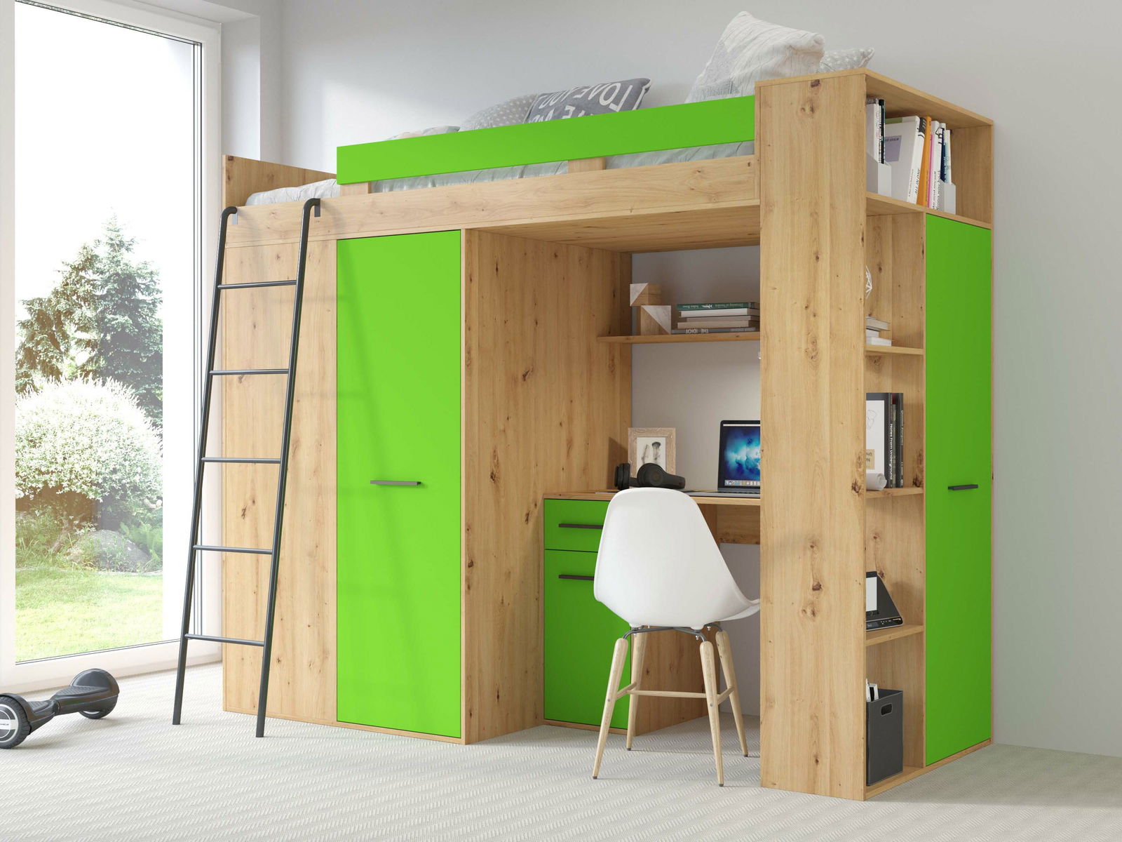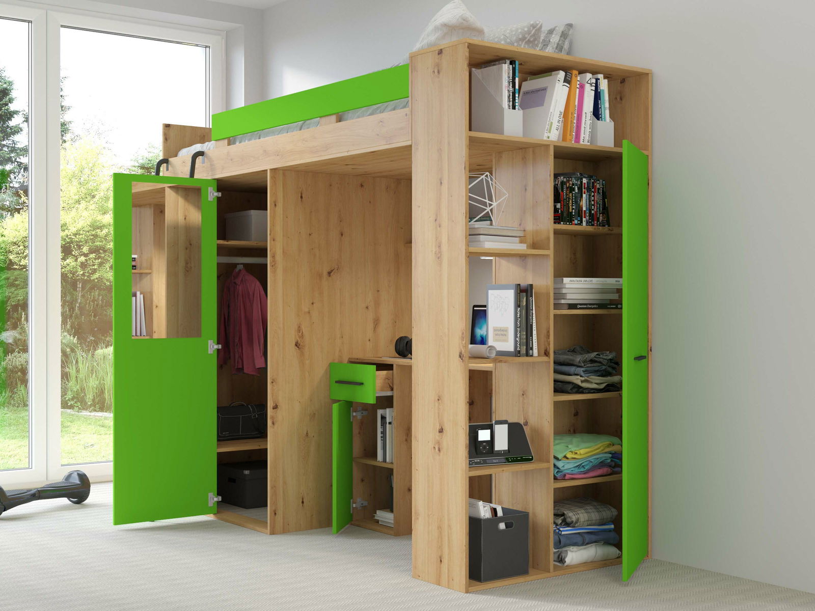 Zařizujete dětský pokoj a hledáte multifunkční nábytek, který vám ušetří spoustu místa? Postel Vivian bude vaše dítě milovat. Postel Vivian zahřňa: PC stolek se skříňkou a zásuvkou, poličky na odkládání knih, policovou skříň, šatní skříň, rošt. Dostupná ve více barevných provedeních. Postel je dodávána bez matrace. Dostupná v levé a pravé verzi.