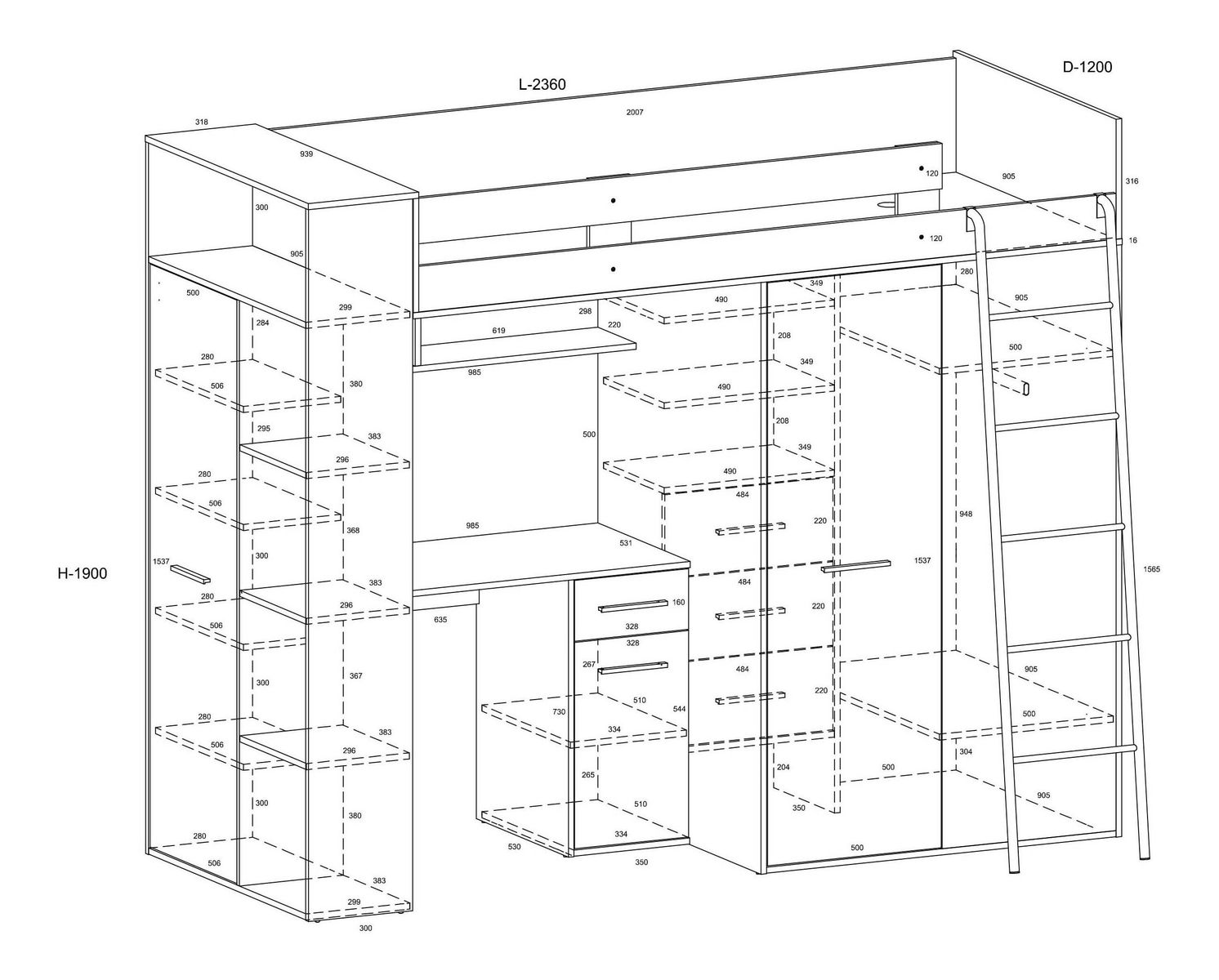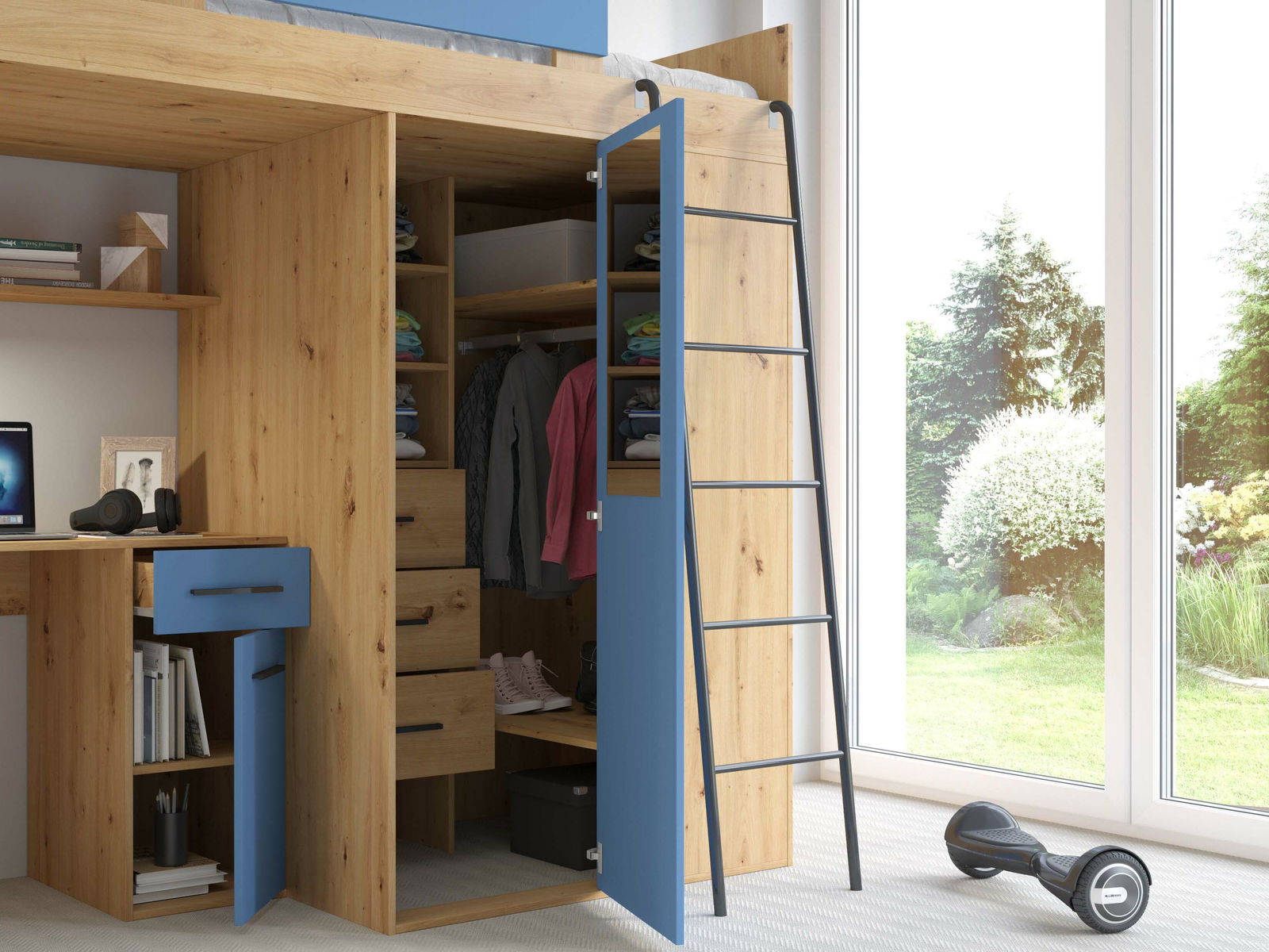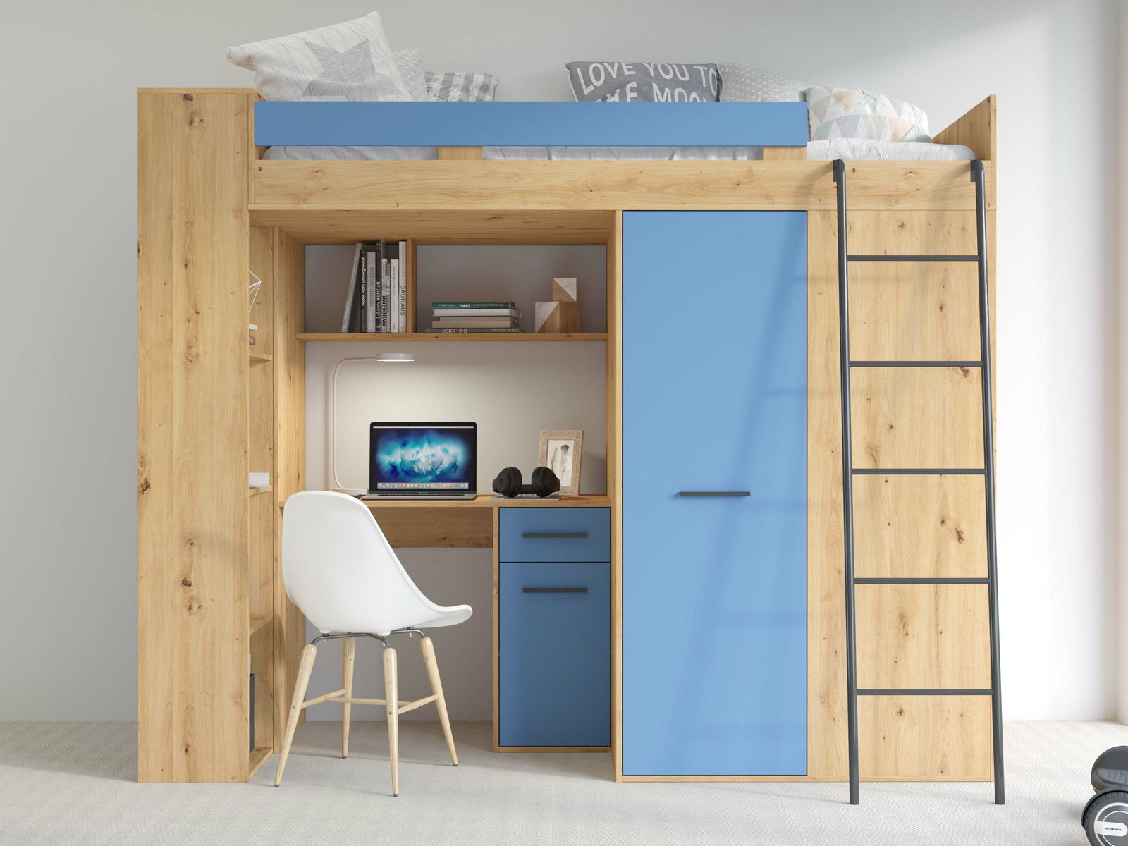 Zařizujete dětský pokoj a hledáte multifunkční nábytek, který vám ušetří spoustu místa? Postel Vivian bude vaše dítě milovat. Postel Vivian zahřňa: PC stolek se skříňkou a zásuvkou, poličky na odkládání knih, policovou skříň, šatní skříň, rošt. Dostupná ve více barevných provedeních. Postel je dodávána bez matrace. Dostupná v levé a pravé verzi.