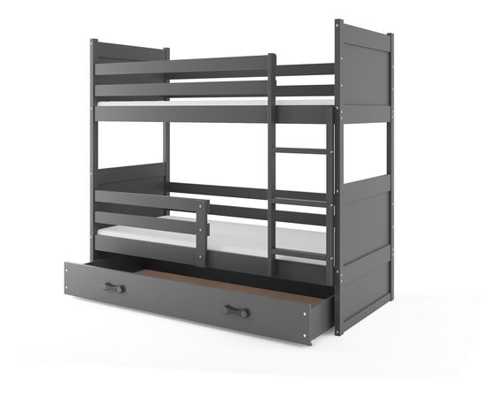 Patrová postel 90 x 200 cm Ronnie B (grafit + grafit) (s rošty, matracemi a úl. prostorem)
