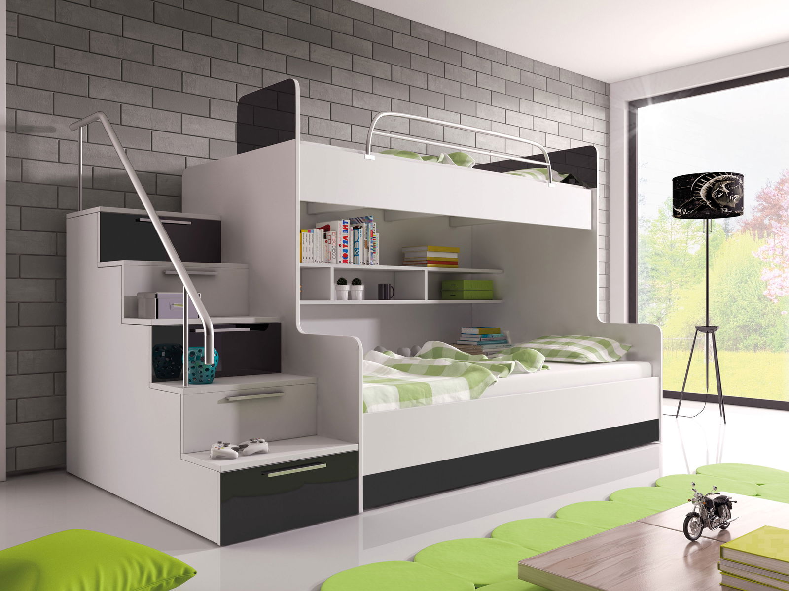 Patrová postel Ruby II (L) (bílá + černá) (s rošty)