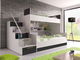 Velmi praktický set do dětského pokoje, který zahrnuje patrovou postel se dvěma spacími místy, schody a velice užitečný úložný prostor ve formě polic. Ideální i pro menší interiéry. Vyrobeno z vysoce kvalitní MDF desky, s dveřmi a zásuvkami pokrytými 0,8 mm akrylovou lakovanou fólií.
