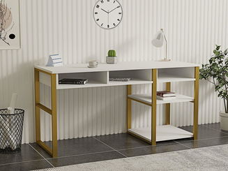 Psací stůl Nizeno NI11 (dub světlý + bílá + tyrkysová)