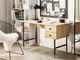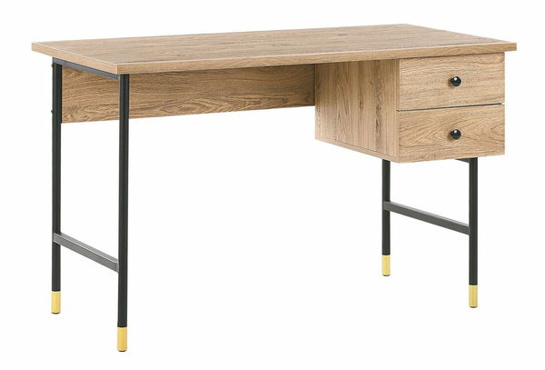Tento jedinečný psací stůl v retro designu se stane stylovým a funkčním doplňkem každé domácí kanceláře. Je vyroben z dřevotřískové desky, která se snadno udržuje, takže vám bez problémů bude sloužit dlouhá léta. Stůl je vybaven dvěma prostornými zásuvkami, které můžete využít pro uložení dokumentů, knih či jiných kancelářských potřeb. Díky černým kovovým nohám je celá konstrukce stabilní.