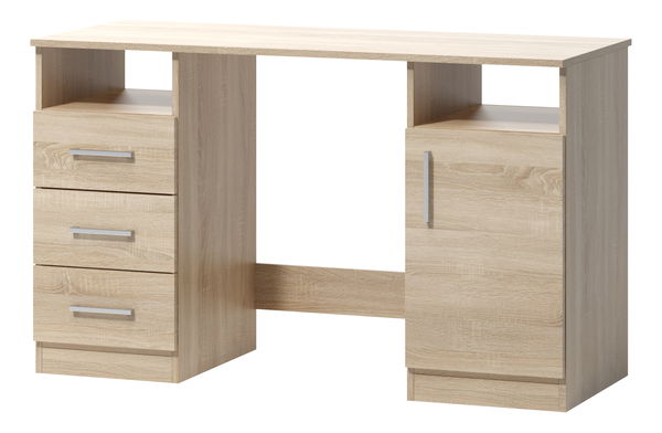 Zařiďte si pracovnu, či studentský pokoj tímto stylovým PC stolkem. Hodí se do pracovny, či studentského pokoje. Určitě oceníte jeho funkční řešení úložného prostoru. V levé části se nachází otevřená polička a tři zásuvky. V pravé části je otevřená polička a skříňka.