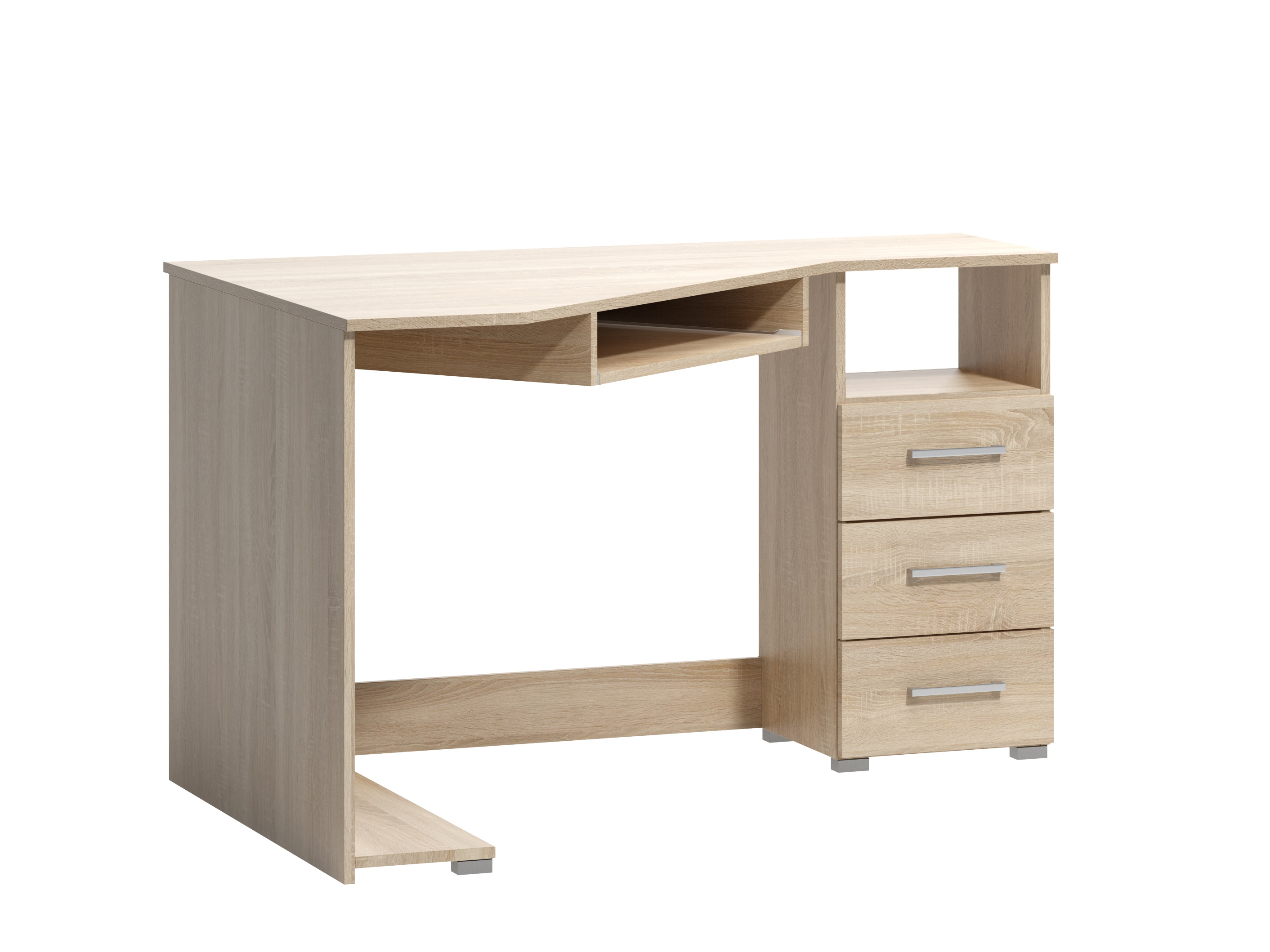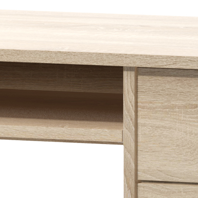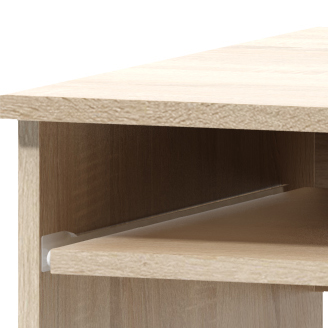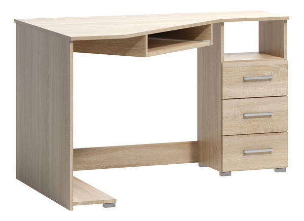 PC stolek otočený vpravo využijete nejen pro práci s počítačem, ale také jako psací stolek či stolek pro dělání úkolů. Stolek má vysouvnou desku pro klávesnici a na boku komodu se třemi zásuvkami. Stolek je vyroben z dřevotřískové desky.