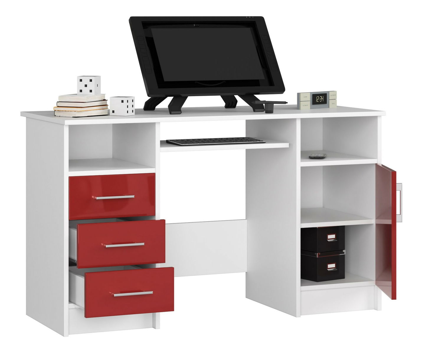 ZobrazitPsací stůl Aziza je vyroben z laminované desky o tloušťce 16 milimetrů. Tento materiál je vysoce odolný vůči oděru a různým druhům poškození. Hrany nábytku jsou pokryty vysokopevnostní ABS hranou. Produkt je určen do kanceláře, ale také do domácí pracovny či do studentského pokoje. Skvěle se bude hodit do klasicky řešených i moderních interiérů a umožní vám pracovat nebo studovat ve vhodných podmínkách. Čela zásuvek a dvířek jsou vyrobena z laminované desky. Uvnitř dveří se nachází jedna police a zásuvky a police na klávesnici se pohybují na kovových válečkových vodítkách. Dostupný ve více barevných provedeních.