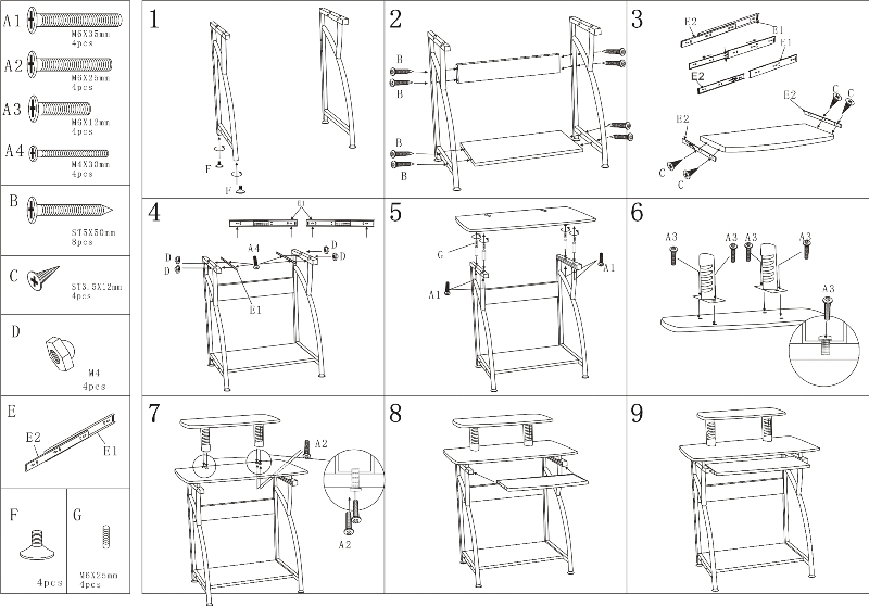 PC stolek B-07 s vyvýšeným místem pro LCD monitor je dodáván v hnědém barevném podání. Stolek také obsahuje výsuvný šuplík pro klávesnici a spodní vrstvu, která je použitelná pro uložení bedny od PC.
