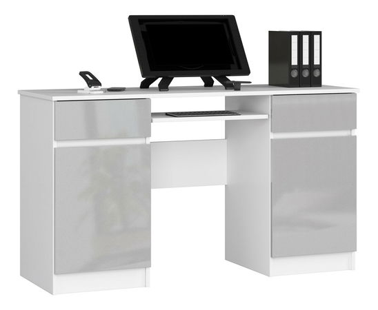 Odolný a kompaktní stůl pro notebook a počítač je pohodlným řešením pro kancelář, domácí kancelář nebo pokoj pro mládež. Psací stůl je vyroben z laminované desky odolný vůči oděru. Má spoustu prostoru pro jakékoli uspořádání. Čela zásuvek a dvířek jsou vyrobena z laminované desky. Zásuvky a police na klávesnici se pohybují na kovových válečkových vodítkách. Pro lepší ochranu před poškrábáním a jiným menším poškozením jsou všechny viditelné hrany kryty ABS hranou se zvýšenou odolností proti poškození. Spolu s dobře zvolenou kancelářskou židlí usnadňuje udržení správného držení těla a zásuvky a skříňky jsou praktickým místem pro uložení potřebných dokumentů, sešitů, šanonů a jiných kancelářských potřeb. Díky jednoduchému minimalistickému designu se stůl hodí téměř do každého interiéru. Dostupný ve více barevných provedeních.