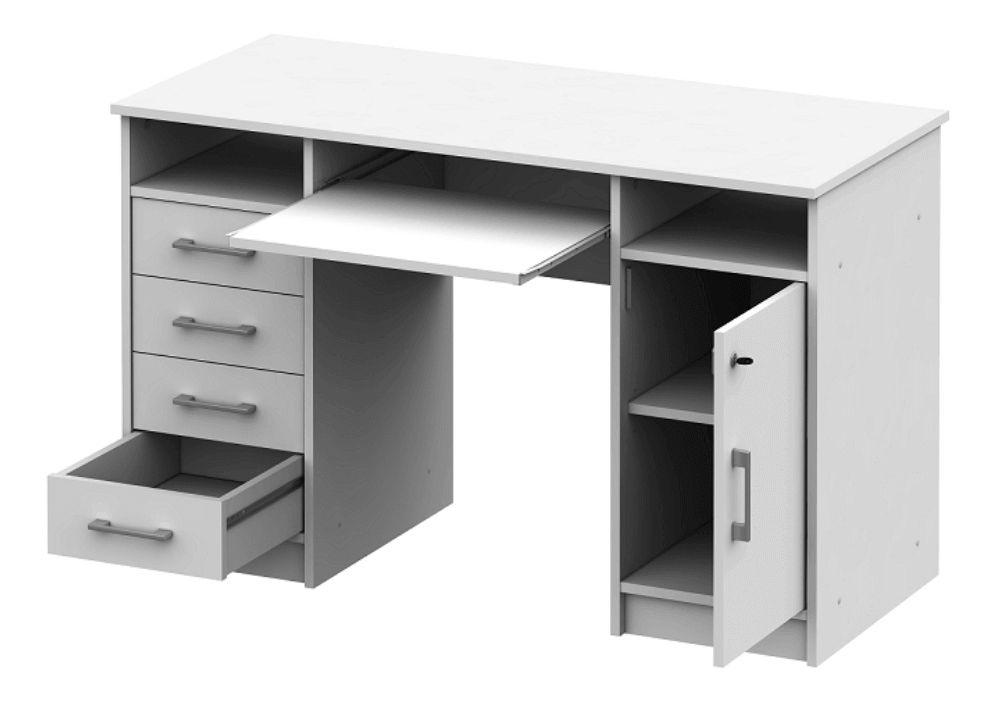 Vyroben je z DTD fóliovaná v barevném provedení buk. Na pravé straně se nachází skříňka s dvířky s jednou policí a otevřeným úložným prostorem a na levé straně jsou čtyři šuplíky s otevřeným úložným prostorem. Plochu šikovně ušetříte, pokud přesunete klávesnici a myš na praktickou vysouvací polici.