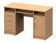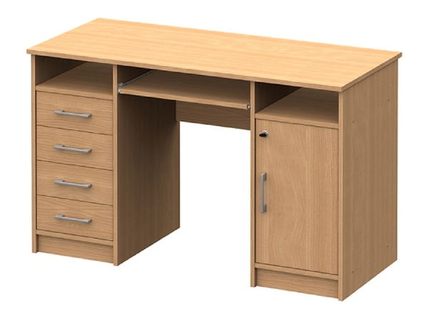 Vyroben je z DTD fóliovaná v barevném provedení buk. Na pravé straně se nachází skříňka s dvířky s jednou policí a otevřeným úložným prostorem a na levé straně jsou čtyři šuplíky s otevřeným úložným prostorem. Plochu šikovně ušetříte, pokud přesunete klávesnici a myš na praktickou vysouvací polici.
