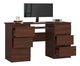 ZobrazitPředstavujeme kvalitní počítačový stůl Behati, zajišťující vysoký pracovní komfort a dostatečný prostor pro uložení školních potřeb nebo počítačového příslušenství, jako jsou disky, přenosné paměti a jiné drobné vybavení. Je vyroben z kvalitního materiálu, lamino desky o tloušťce 16 mm. Rozměry psacího stolu jsou 135×70×55 cm, což plně postačuje pro pohodlné učení, hru či práci. Na desku stolu lze umístit stolní počítač, notebook nebo jiné zařízení, například herní konzoli. Stůl je vybaven 6 zásuvkami a policí na klávesnici. Deska i čela prezentovaného stolu jsou odolná vůči oděru, díky tomu neztrácí nábytek svůj estetický vzhled, i když je často používán. Všechny hrany jsou navíc chráněny ABS hranou proti mechanickému poškození, například při nárazu židle. Zásuvky a police klávesnice jsou umístěny na kovových vodicích válečcích, díky čemuž je jejich otevírání a zavírání plynulé a nevyžaduje použití velké síly. Dostupný ve více barevných provedeních.