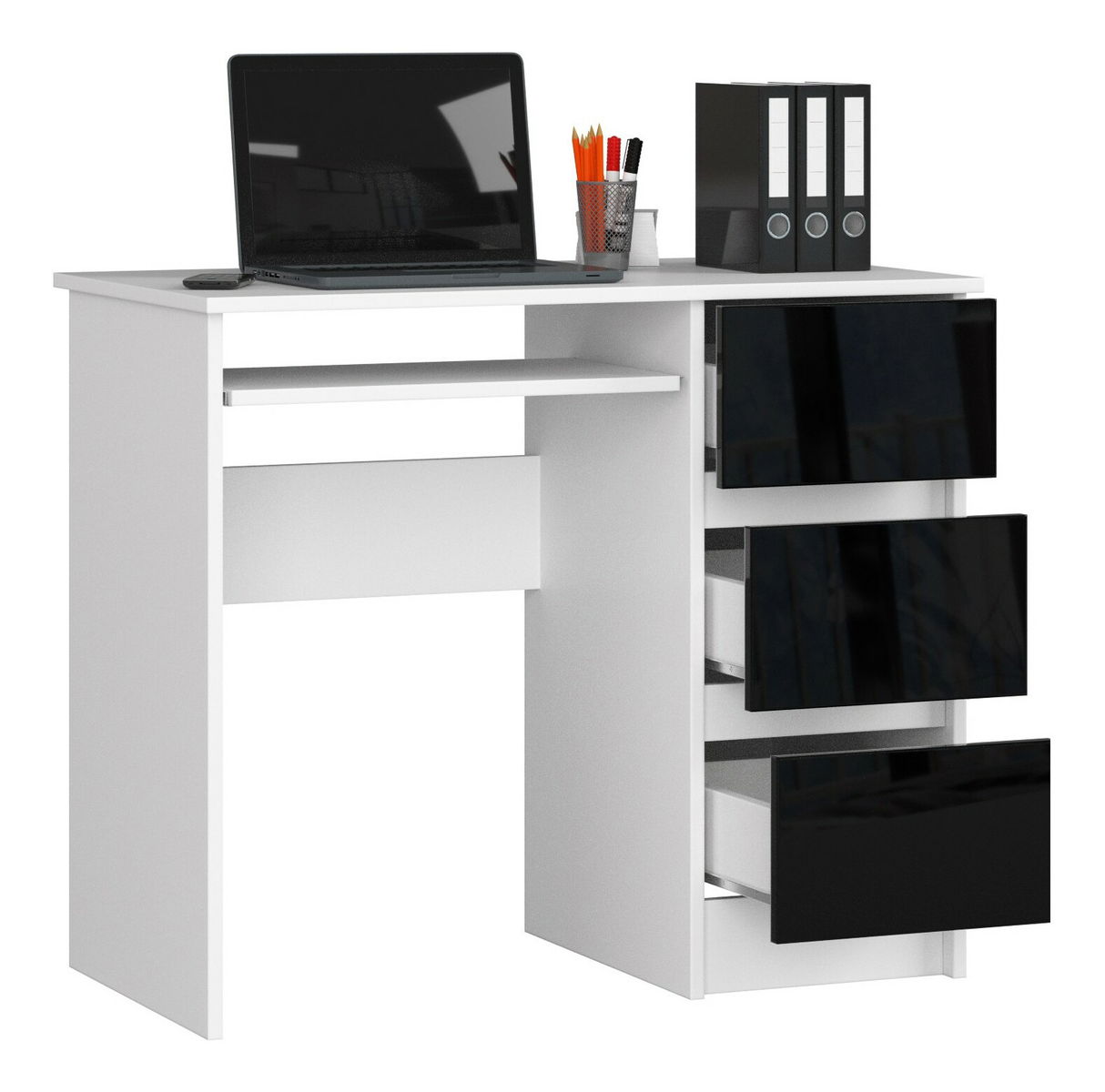 PC stolek Benicio (bílá + černý lesk) (P)