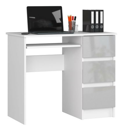 Prezentovaný počítačový stůl Benicio je 90 cm dlouhý, 77 cm vysoký a 50 cm hluboký a jeho hmotnost je 30 kg. Je vyroben z kvalitní laminované desky, odolné vůči oděru. Hrany psacího stolu jsou pokryty ABS hranou, která zabraňuje lehkému poškození nábytku. Stůl nabízí také spoustu volného místa, které lze uspořádat a využít dle vlastního uvážení. To vše díky třem zásuvkám – každá z nich má uvnitř jednu poličku. Součástí stolu je také police na klávesnici, která se snadno a volně pohybuje díky kovovým válečkovým vodítkům. Nábytek je vyroben z kvalitních materiálů, takže si dlouho zachová svůj dokonalý vzhled. Výhodou pc stolku Benicio je jeho estetický vzhled a atraktivní cena. Určitě splní všechna očekávání z hlediska funkčnosti a estetiky. Dostupný ve více barevných provedeních.