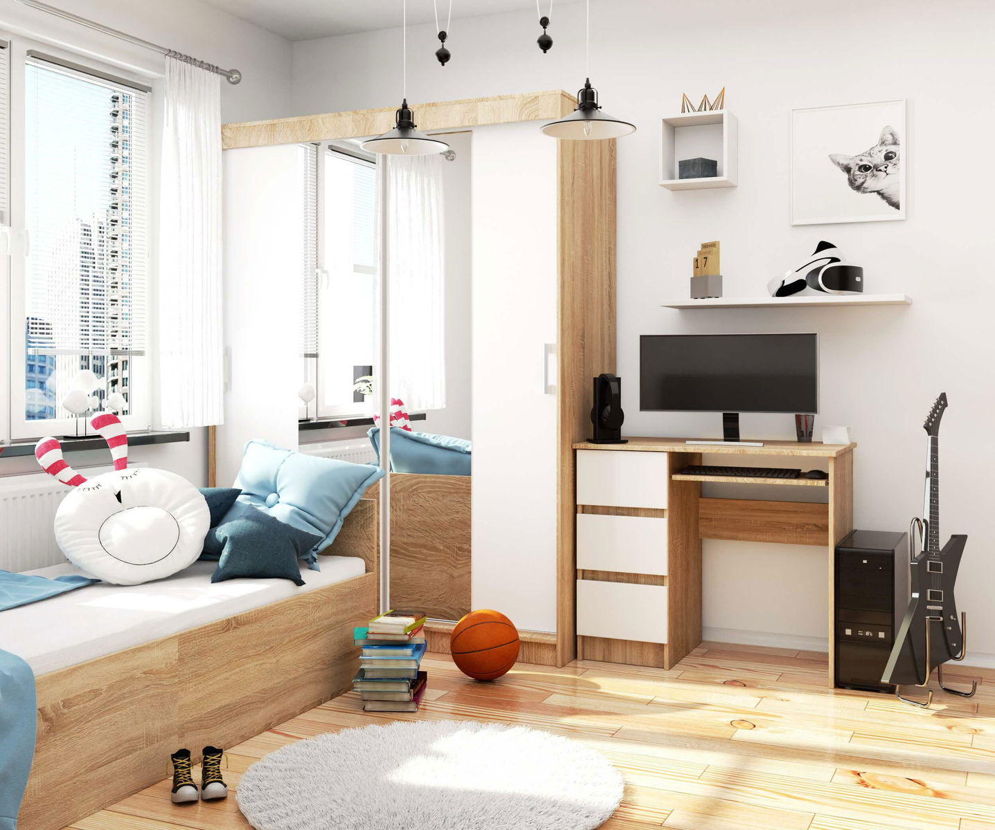 PC stolek Benicio (dub sonoma + bílá) (L)