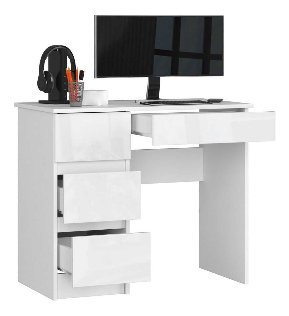 ZobrazitPC stůl Benicio II je vyroben z laminované desky odolné vůči oděru, díky čemuž zůstává estetický po dlouhou dobu a bez viditelných stop používání. Všechny viditelné hrany jsou kryty ABS hranami, díky čemuž jsou chráněny před mechanickým poškozením, například nárazem do židle. PC stůl je vybaven 4 praktickými zásuvkami, které se pohybují na kovových válečkových vodítkách, díky čemuž se velmi snadno otevírají a zavírají. Zásuvky poskytují velké množství prostoru pro uspořádání, zatímco na desku o délce 90 cm a šířce 50 cm se snadno vejde monitor notebooku nebo stolního počítače. Psací stůl je díky svým rozměrům navíc polohovatelný a vejde se i do menších místností. Dostupný ve více barevných provedeních.