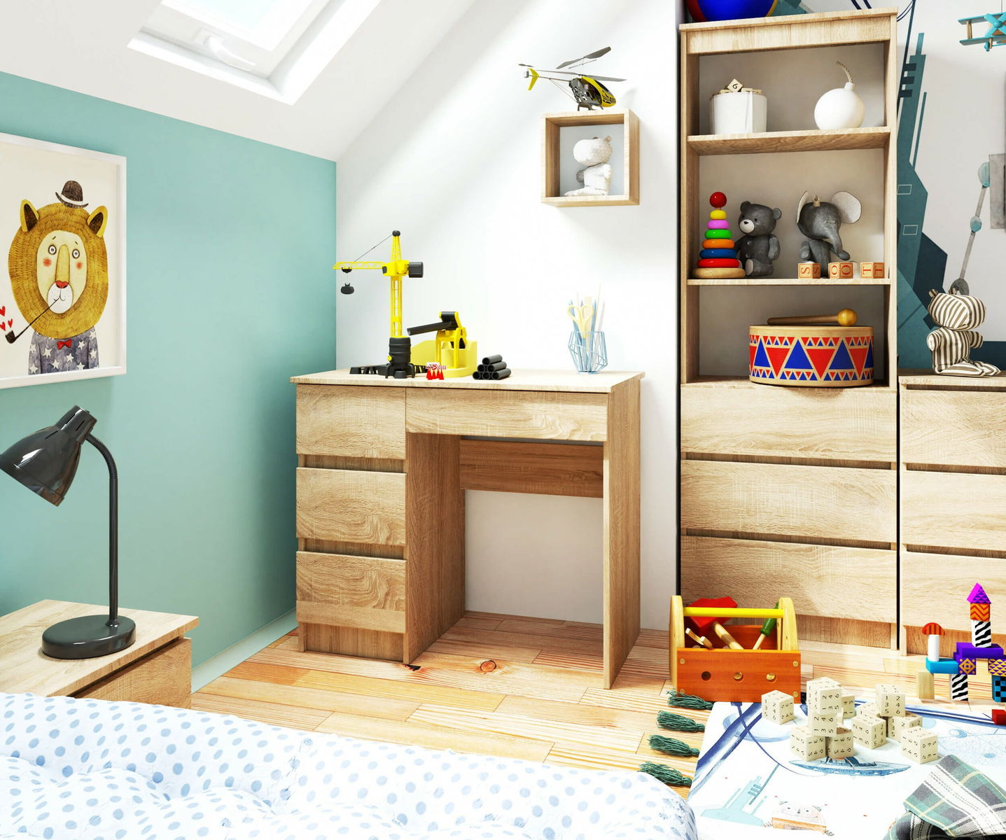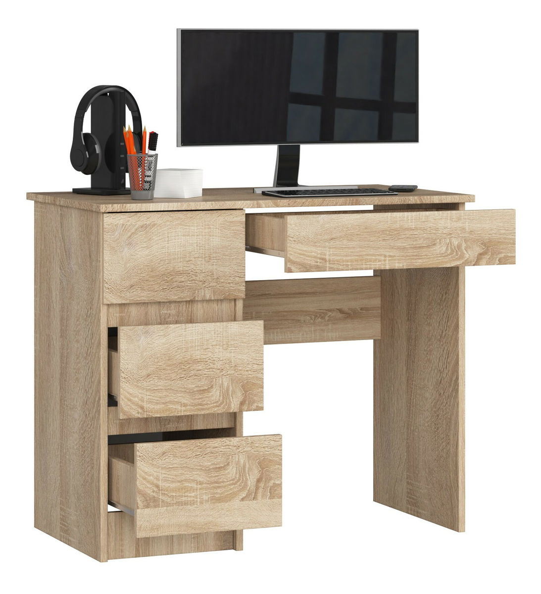 ZobrazitPC stůl Benicio II je vyroben z laminované desky odolné vůči oděru, díky čemuž zůstává estetický po dlouhou dobu a bez viditelných stop používání. Všechny viditelné hrany jsou kryty ABS hranami, díky čemuž jsou chráněny před mechanickým poškozením, například nárazem do židle. PC stůl je vybaven 4 praktickými zásuvkami, které se pohybují na kovových válečkových vodítkách, díky čemuž se velmi snadno otevírají a zavírají. Zásuvky poskytují velké množství prostoru pro uspořádání, zatímco na desku o délce 90 cm a šířce 50 cm se snadno vejde monitor notebooku nebo stolního počítače. Psací stůl je díky svým rozměrům navíc polohovatelný a vejde se i do menších místností. Dostupný ve více barevných provedeních.