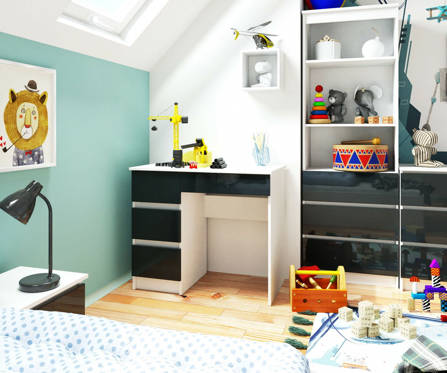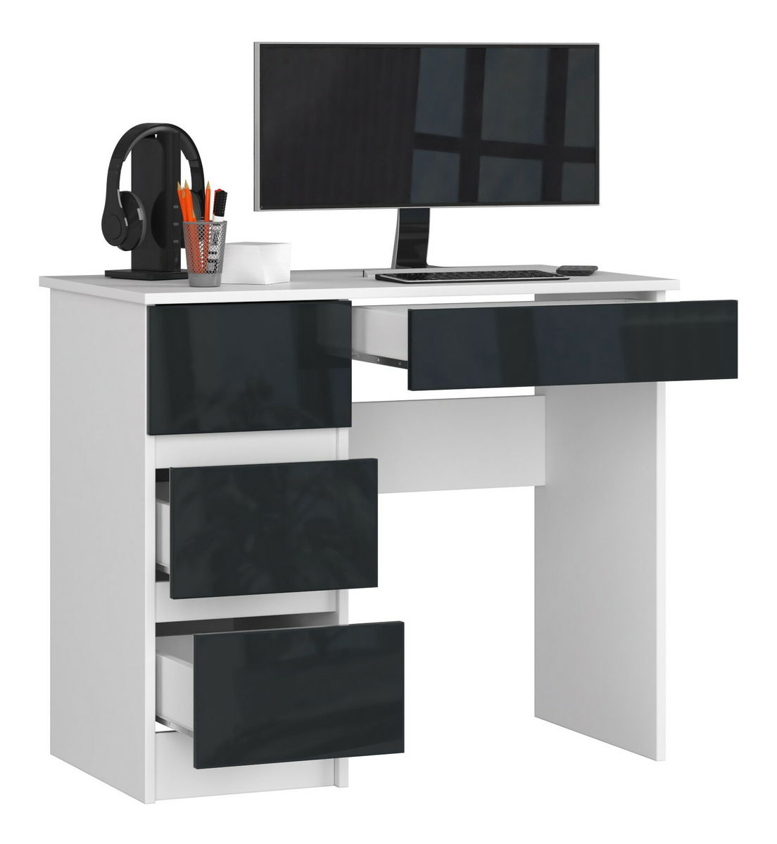 PC stůl Benicio II je vyroben z laminované desky odolné vůči oděru, díky čemuž zůstává estetický po dlouhou dobu a bez viditelných stop používání. Všechny viditelné hrany jsou kryty ABS hranami, díky čemuž jsou chráněny před mechanickým poškozením, například nárazem do židle. PC stůl je vybaven 4 praktickými zásuvkami, které se pohybují na kovových válečkových vodítkách, díky čemuž se velmi snadno otevírají a zavírají. Zásuvky poskytují velké množství prostoru pro uspořádání, zatímco na desku o délce 90 cm a šířce 50 cm se snadno vejde monitor notebooku nebo stolního počítače. Psací stůl je díky svým rozměrům navíc polohovatelný a vejde se i do menších místností. Dostupný ve více barevných provedeních.