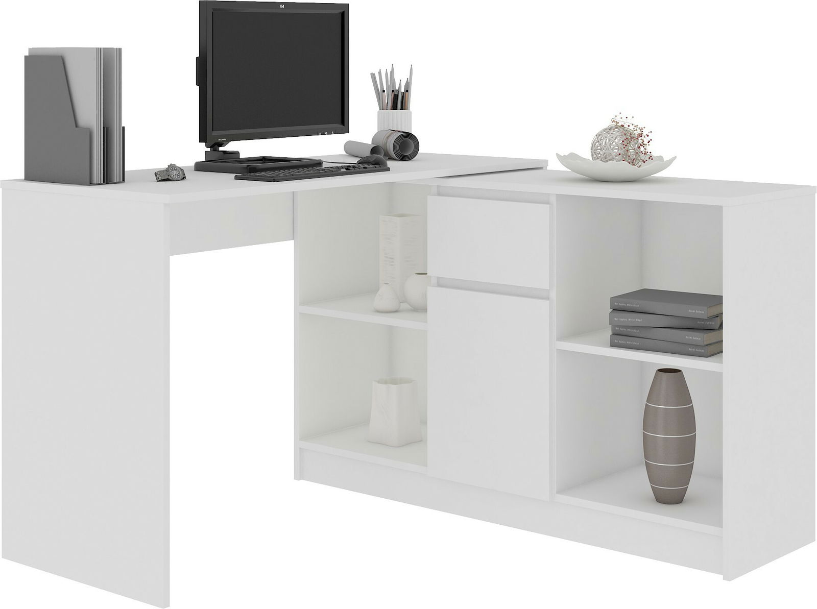 ZobrazitKe klasickému designu interiéru se bude hodit jednoduchý, volně stojící psací stůl Betul. Stolek je vyroben z laminované desky s vysokou odolností proti oděru. Ze stejného materiálu jsou vyrobena i čela zásuvek a dvířek. Hrany a ostré prvky hrany stolu jsou pokryty ABS hranami, které zajišťují větší odolnost proti poškození. Zadní strana stolu je dokončena laminovanou deskou, což vám umožňuje umístit kus nábytku kdekoli, aniž byste jej museli přikládat ke stěně. Dostupný ve více barevných provedeních.
