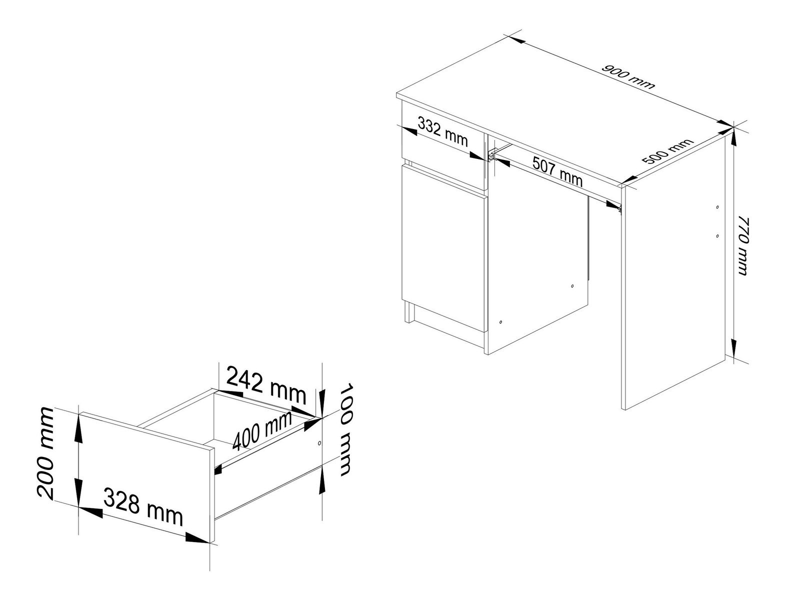 ZobrazitPočítačový stůl Bhaskar je malý stůl s dostatkem prostoru pro nejnutnější věci do školy. Díky dvířkům se do ní vejde spousta sešitů a knih. Psací stůl má délku 90 cm a je jako stvořený do malých a středně velkých místností, do kanceláře i do obývacího pokoje – domácí pracovny, teenagerského či dětského pokoje. Stolek se skládá ze stolové desky, výsuvné police na klávesnici, zásuvky a skříňky za dvířky. PC stolek Bhaskar je vyroben z laminované desky odolné proti oděru. Zásuvka a police klávesnice se posouvají díky kovovým válečkovým vodítkům. Viditelné hrany jsou kryty ABS hranou, která zaručuje odolnost proti poškození. Uvnitř dvířek je jedna police. Dostupný ve více barevných provedeních.