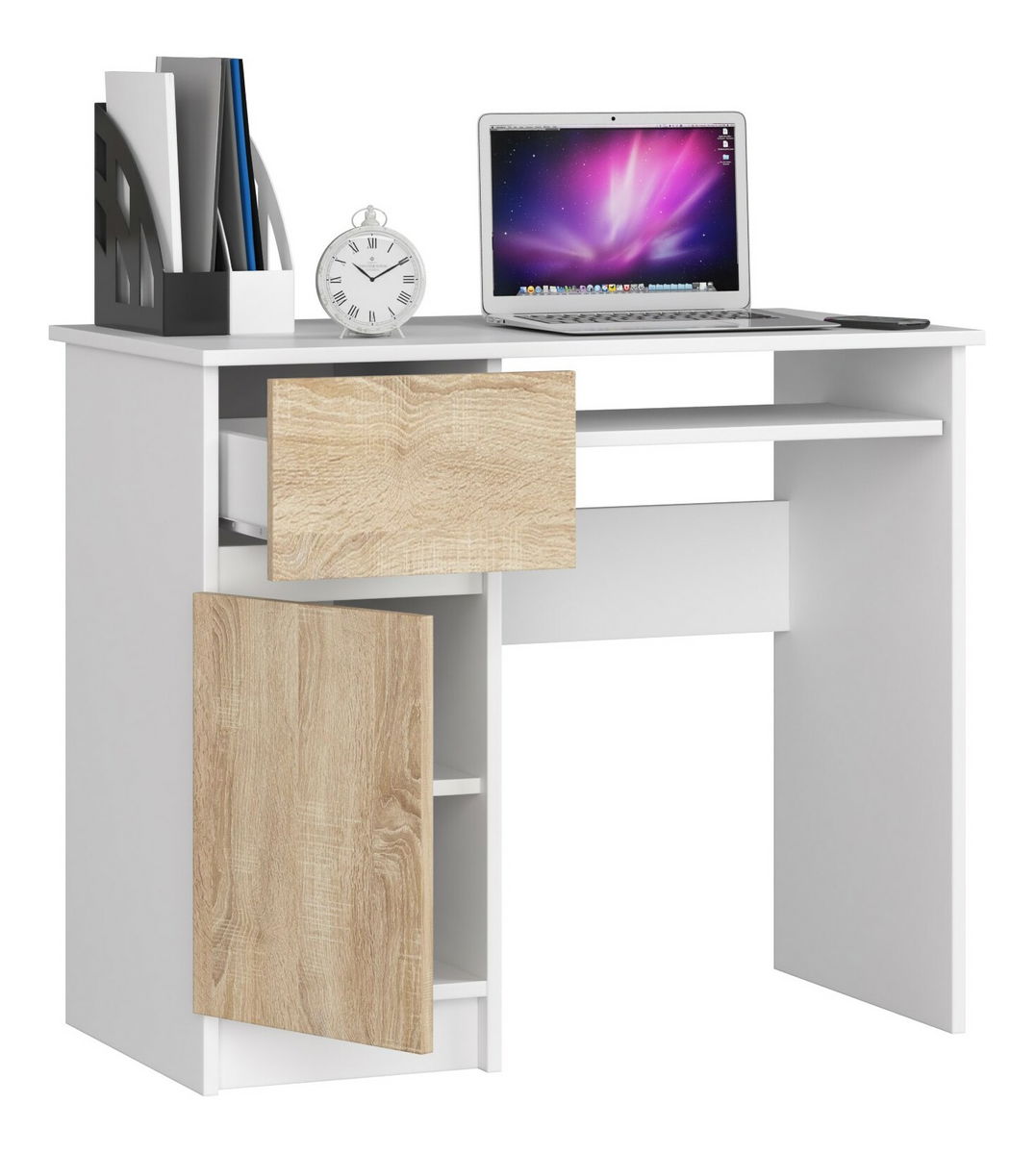 PC stolek Bhaskar (bílá + dub sonoma) (L)