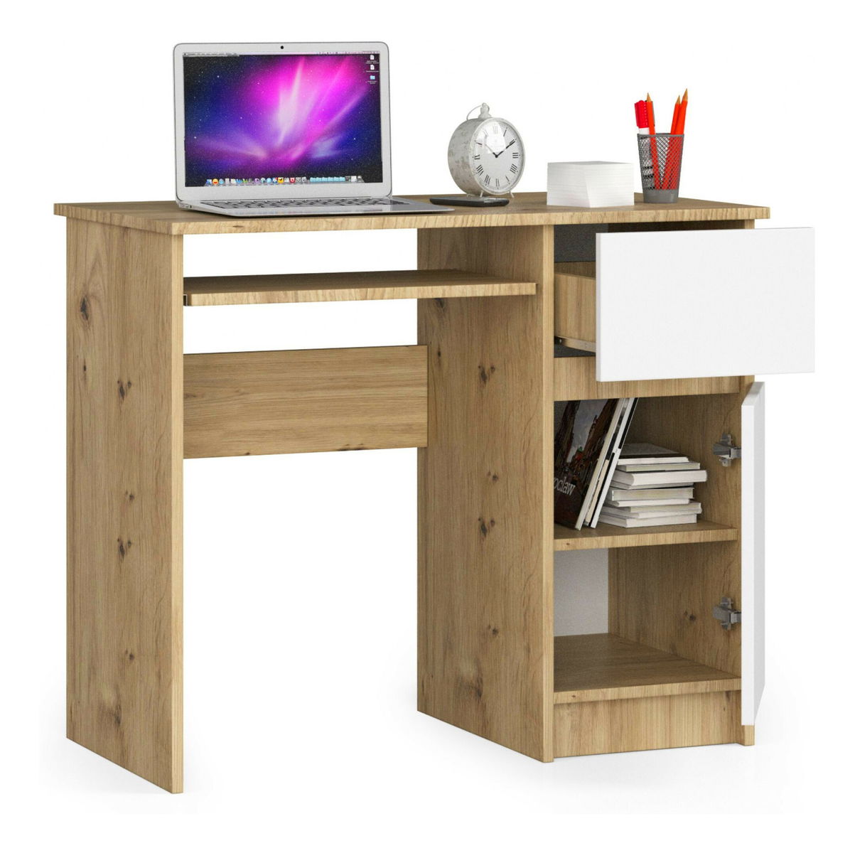 PC stolek Bhaskar (dub artisan + bílá) (P)