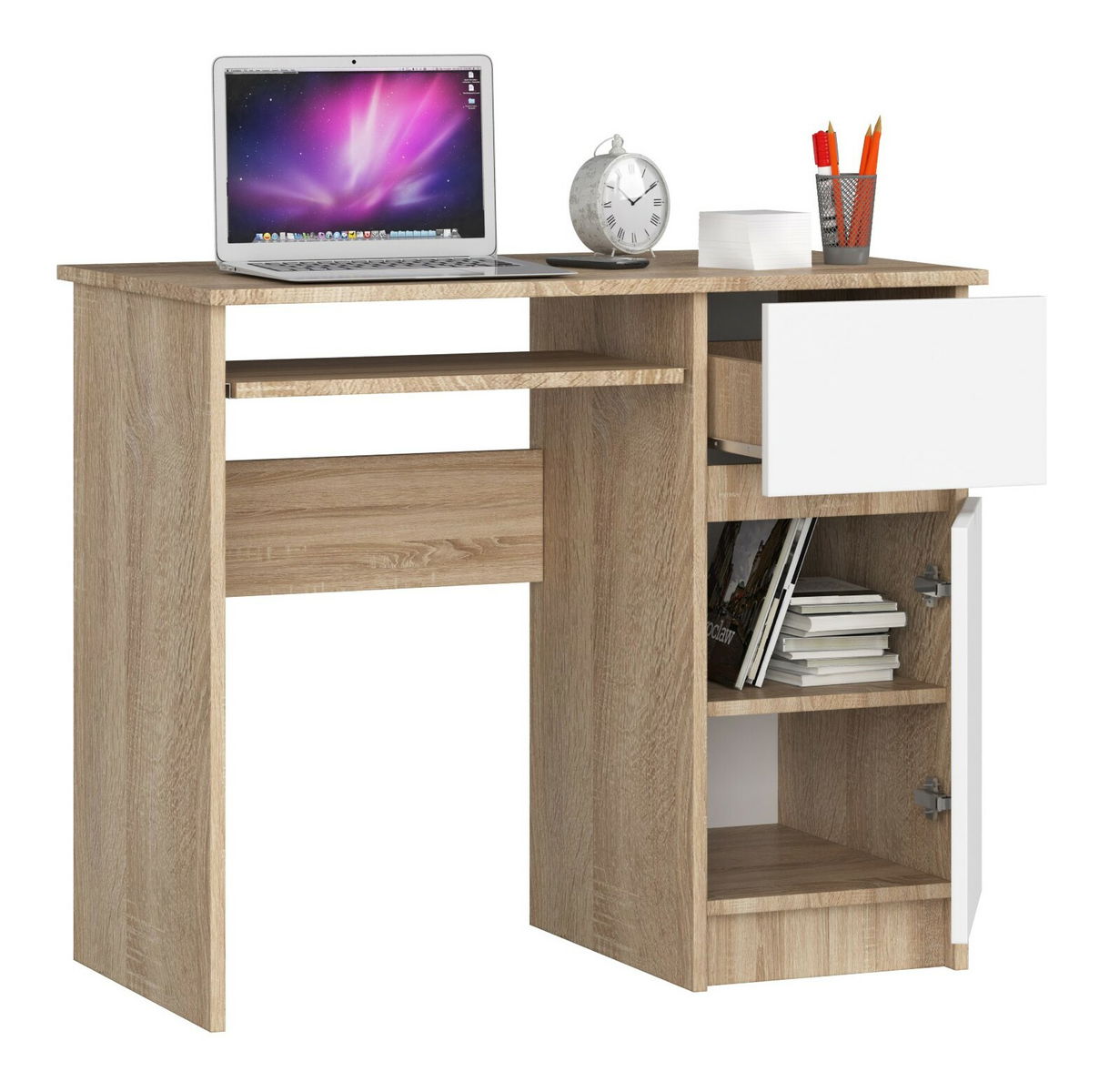 PC stolek Bhaskar (dub sonoma + bílá) (P)