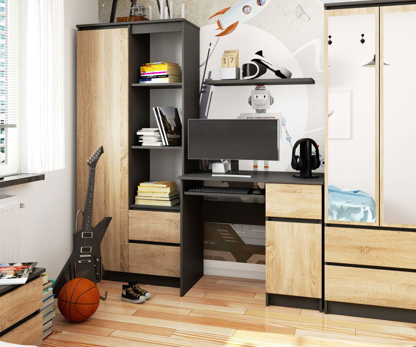 šedý grafit + dub sonoma