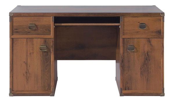 Šikovný PC stolek se skříňkami a zásuvkami po obou stranách. Zajímavým prvkem jsou okované rohy stolku a masivnější kovové úchyty na dvířkách a zásuvkách. Svým stylem a barevným provedením, které připomíná divoký západ se hodí zejména do studentských a dětských pokojů.