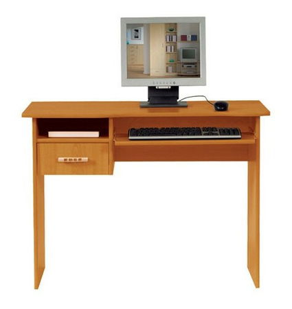 Jednodušší PC stolek moderního designu, který má v levé části jednu zásuvku a menší otevřenou poličku. Do ní si můžete odložit kancelářské potřeby nebo různé dokumenty. Stolek má i výsuvnou podložku pod klávesnici.