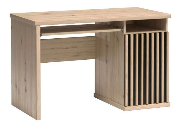 Kus nábytku pro práci doma je především funkční stůl pro speciální úkoly. Stůl, který má místo pro dokumenty, počítač nebo jiné užitečné věci k práci doma. Novinka z kolekce Claudi - psací stůl s lamelami dokonale vyplní prostor mládežnického pokoje. Navíc designový vzhled, tedy módní lamely, vytvoří moderní místnost. Světlá barva desky Artisan bude ladit s jakoukoli barvou stěn a doplňků v domě. Stůl má výsuvnou polici na klávesnici nebo chcete-li notebook, který se tam dá schovat. Na pravé straně je police, do které se vejde například balík papíru. Ve skříňce je police, která dělí tento prostor na polovinu, vejde se do nich spousta kancelářských věcí.