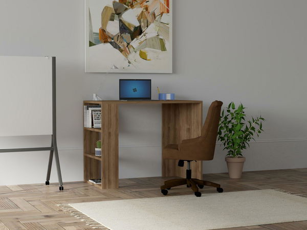 Četné police. Přídavný úložný prostor. Víceúčelový pracovní stůl.