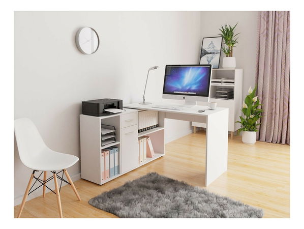Stůl je univerzální: lze jej sestavit na levé nebo pravé straně se skříňkami.