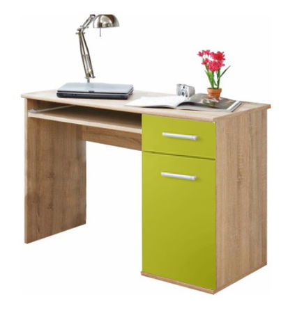 Šikovný PC stolek Emio, který potěší všechny školáky. V pravé části stolku se nachází zásuvka a skříňka. Stolek má zároveň výsuvnou podložku pro klávesnici. Barevné provedení stolku je dub sonoma v kombinaci se zelenou.