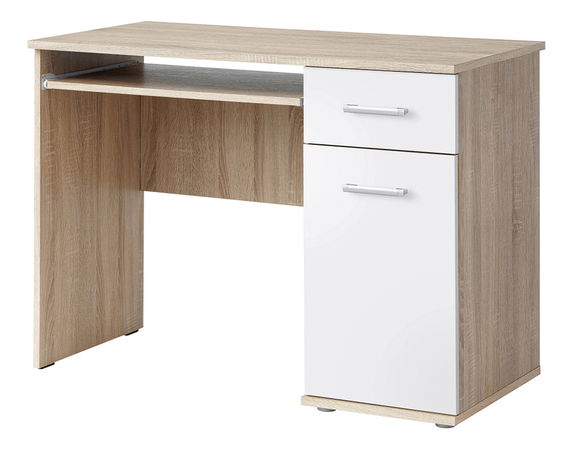 Šikovný PC stolek Emio, který potěší všechny školáky. V pravé části stolku se nachází zásuvka a skříňka. Stolek má zároveň výsuvnou podložku pro klávesnici. Barevné provedení stolku je dub sonoma v kombinaci s bílou.