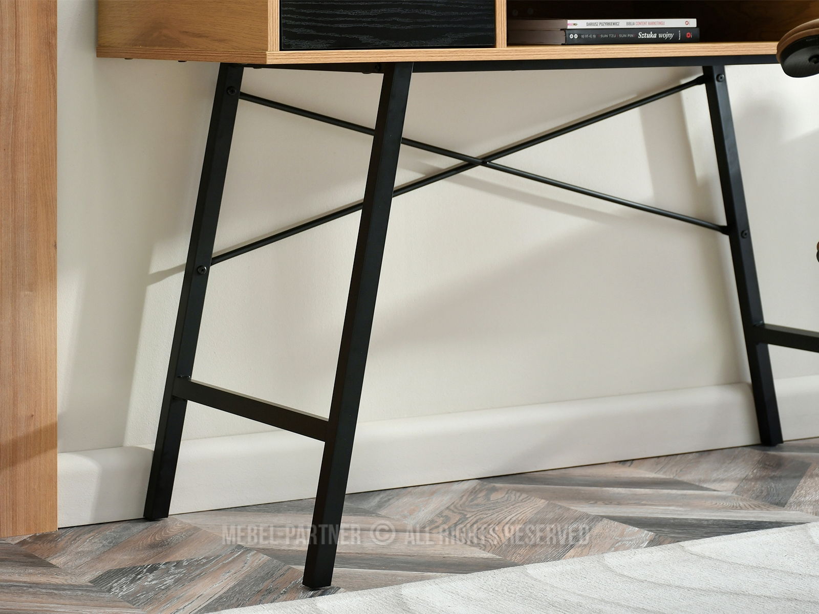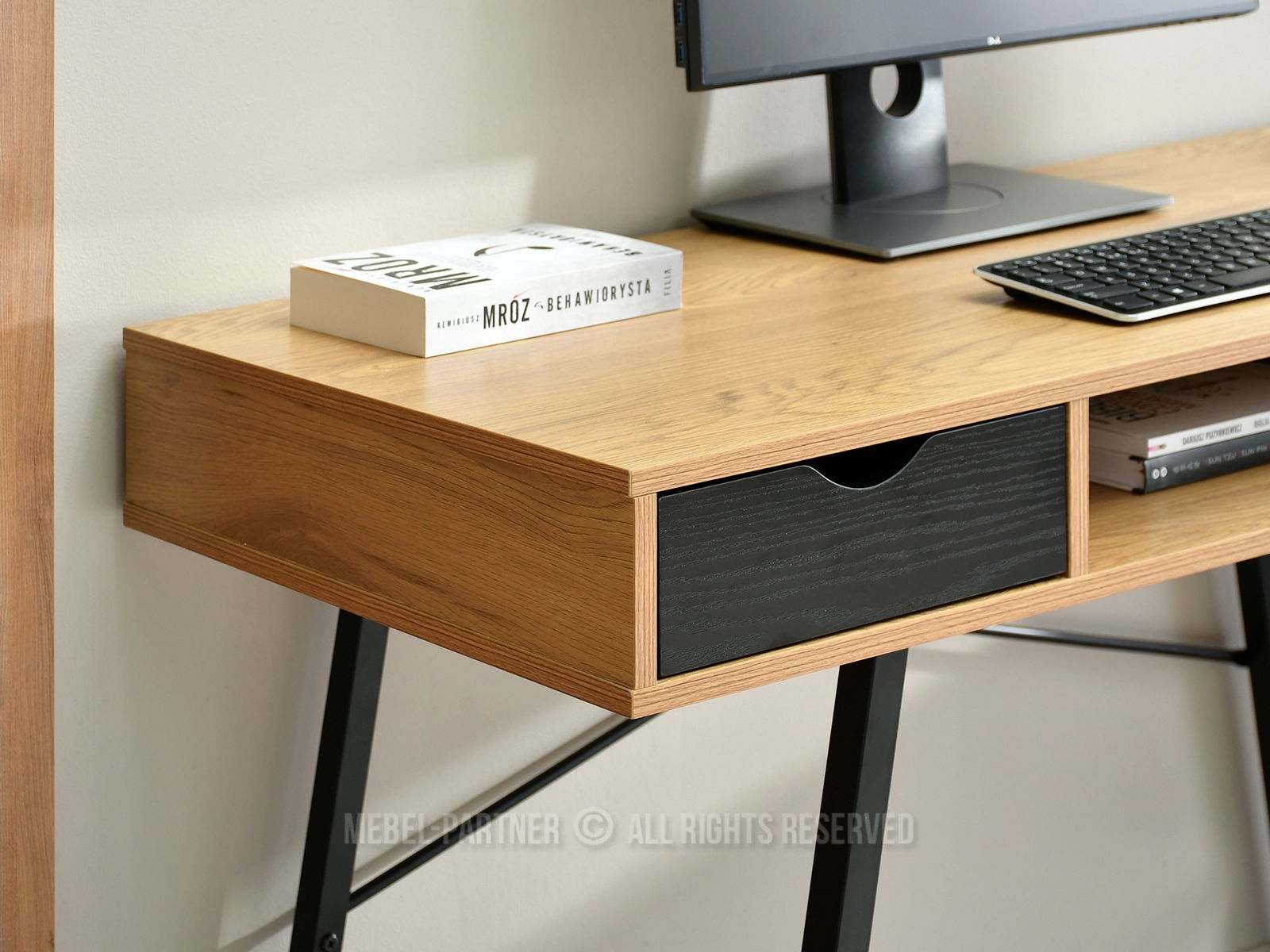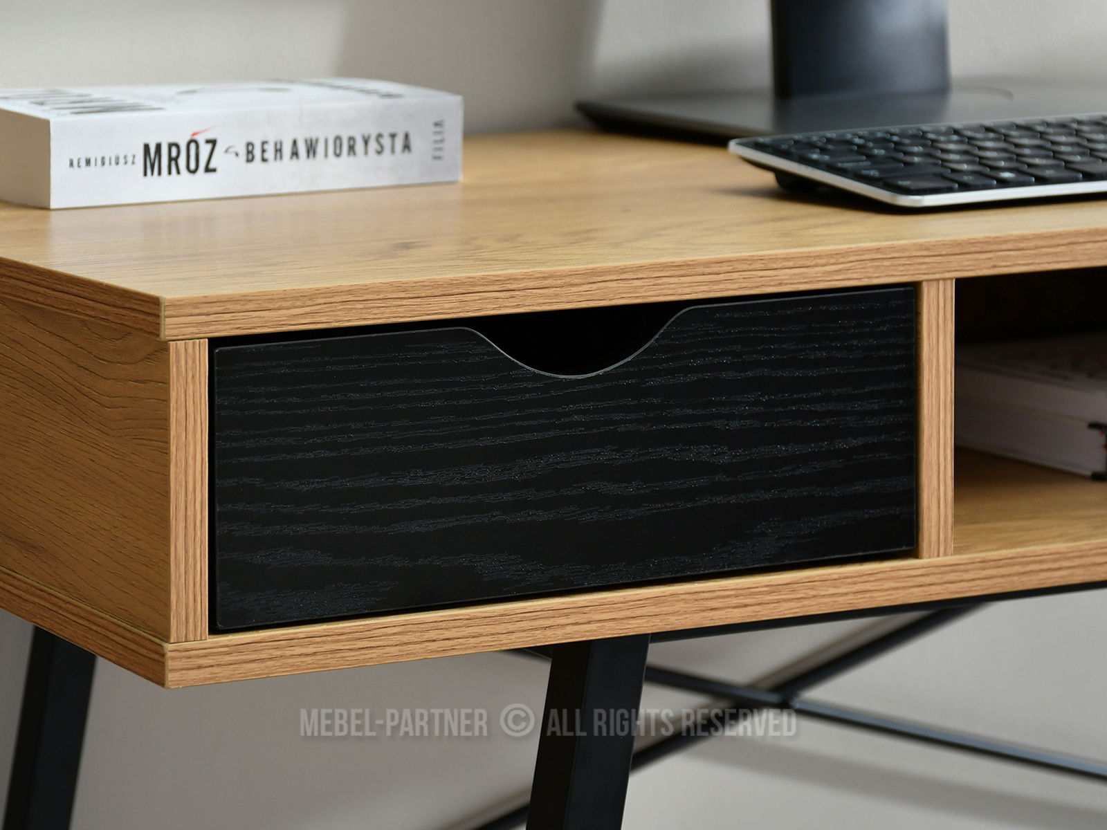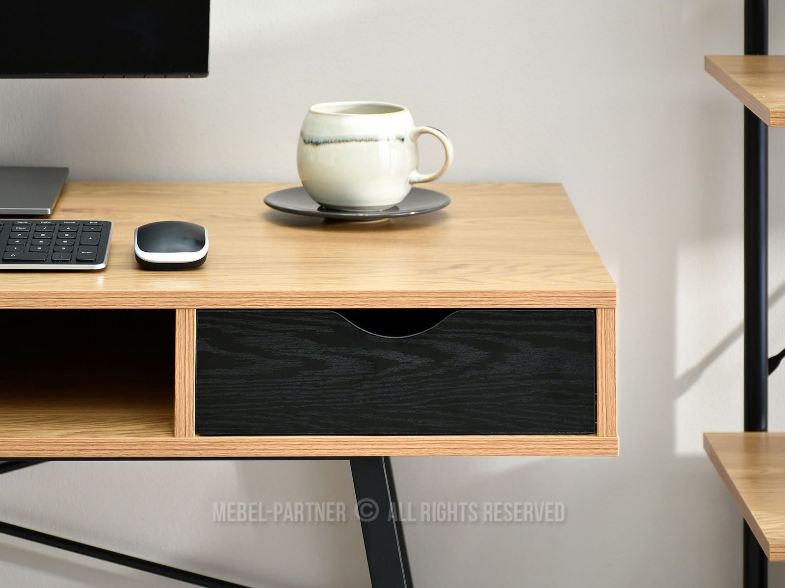 obdélníková deska, s otevřenými policemi, se zásuvkami