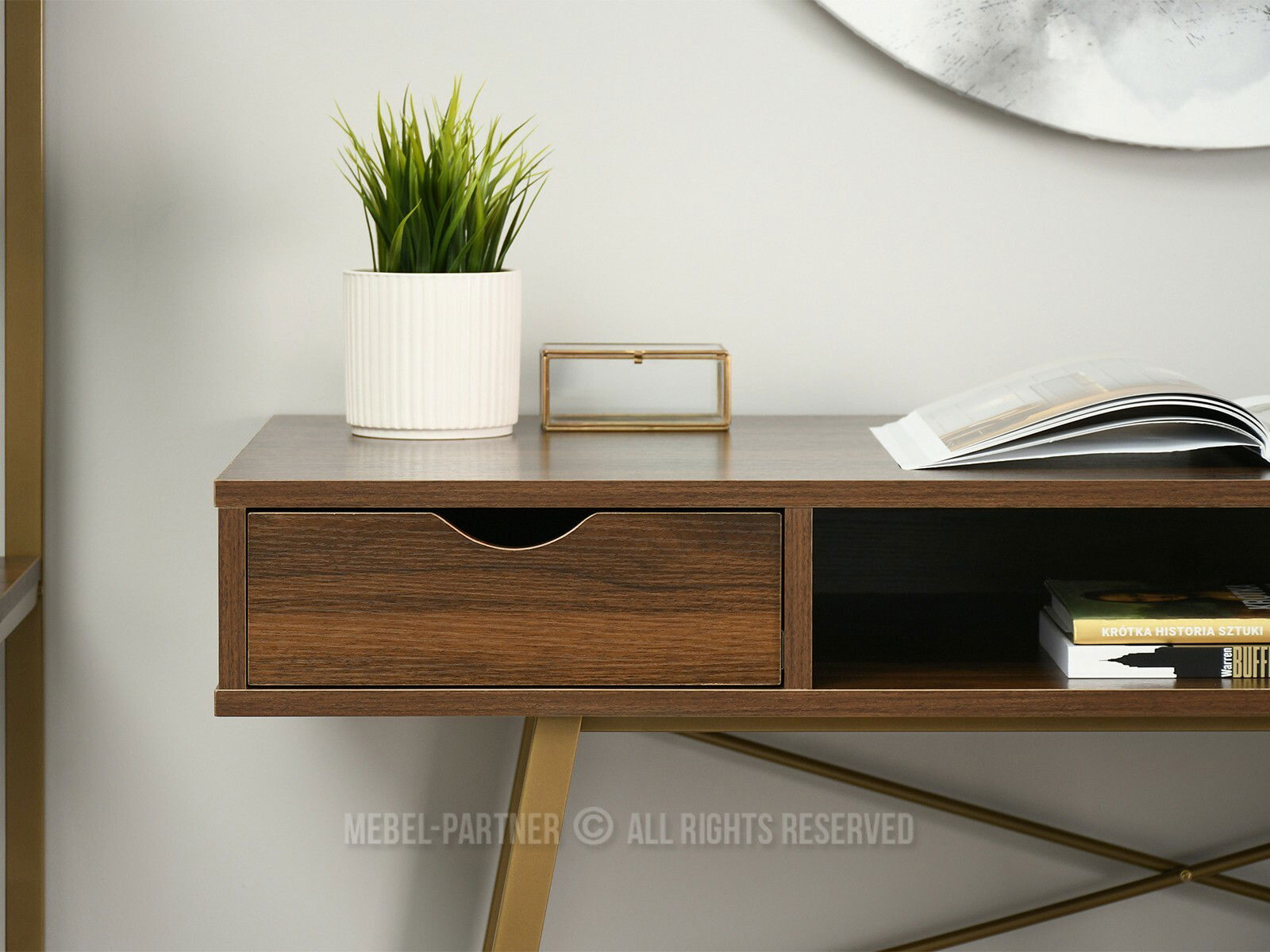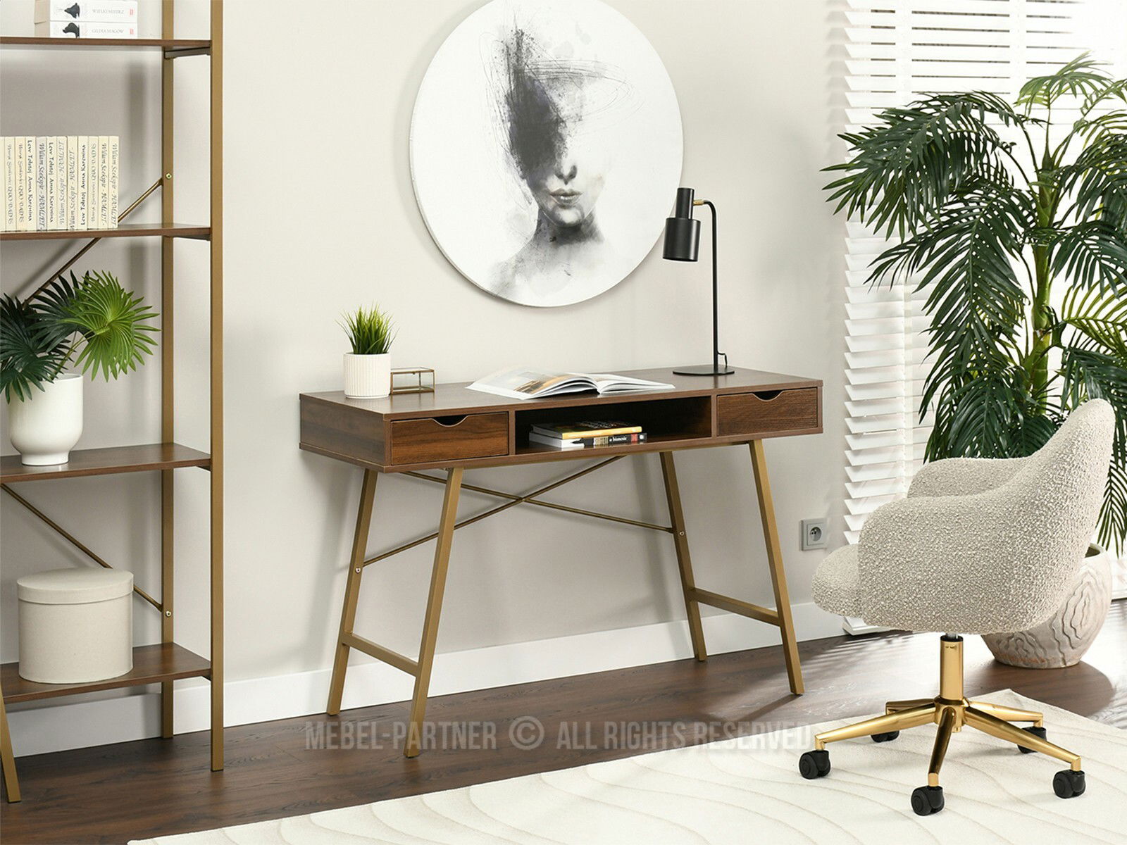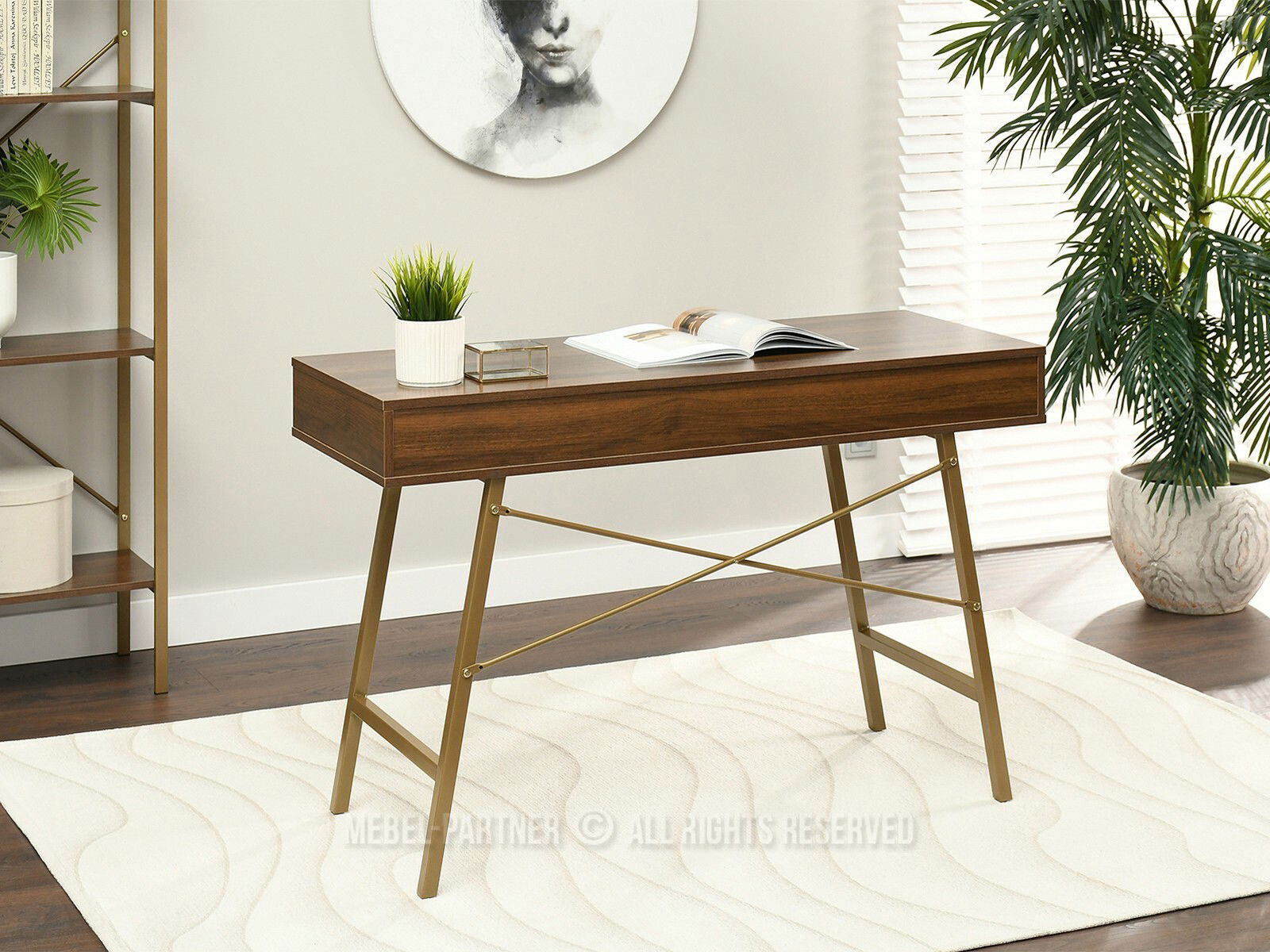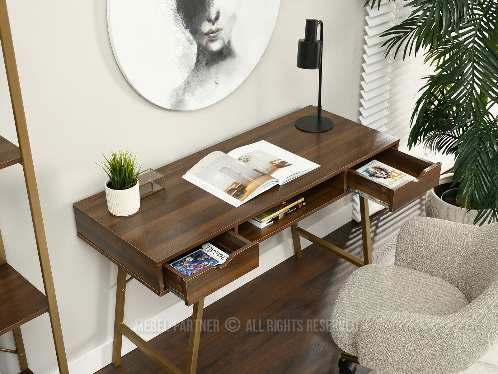 PC stolek Gavon (ořech + zlatá)