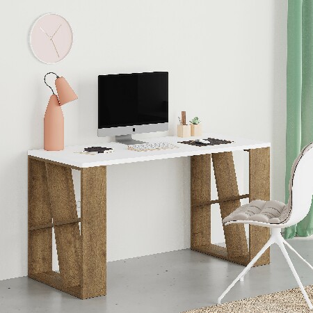 Rozkládací jídelní stůl Vina (bílá + dub wotan)