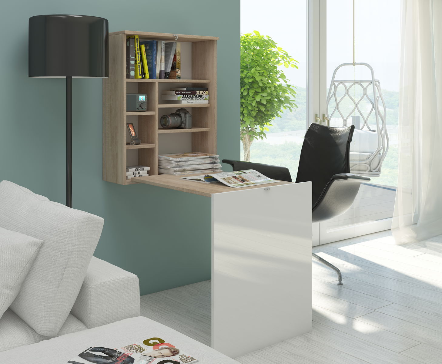 ZobrazitUnikátní PC stolek Hide důmyslně vyřeší problém s nedostatkem prostoru. PC stolek má formu skříňky na stěnu. Přední část pak jednoduše vyklopíte a vytvoříte tak pracovní desku PC stolku. Ve skříňce se nacházejí menší poličky, kam si můžete odložit různé drobnosti. Po práci můžete pracovní desku jednoduše sklopit a uzavřít skříňku. Barevné provedení PC stolku je dub sonoma světlý v kombinaci s bílým leskem.