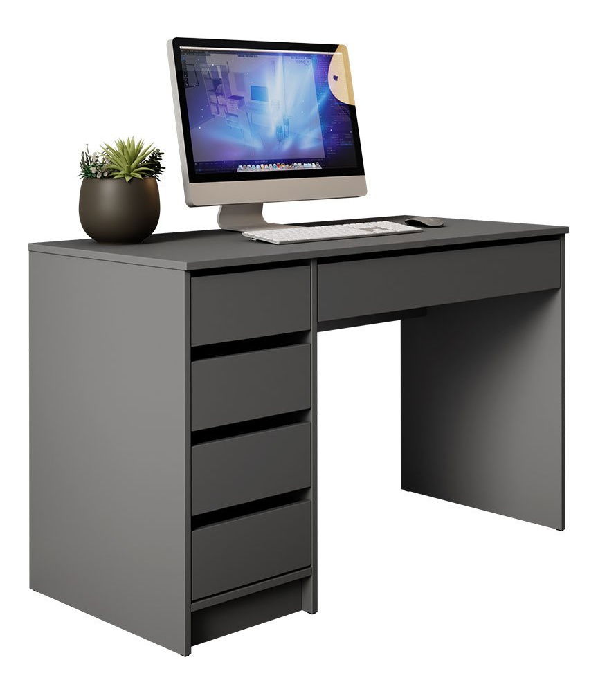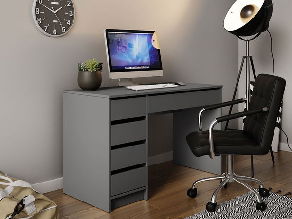 ZobrazitHeron je univerzální kus nábytku, který si najde své místo v dětském pokoji i v pracovně, kanceláři nebo ložnici. Můžete jej využít jako stůl a toaletní stolek. Jeho nadčasové barvy dokonale ladí s jakýmkoli designem. Tento nábytek je vybaven zásuvkami bez úchytů umístěnými na válečkových zásuvkových systémech, což usnadňuje otevírání a zavírání. Tento model je mimořádně univerzální. Je to v tom, že zásuvky můžete připevnit vlevo nebo vpravo – vy se rozhodnete kde by měly být! PC stůl byl vyroben z dřevotřískové desky odolné proti vlhkosti a poškrábání, což zaručuje dlouhodobou spokojenost při používání.