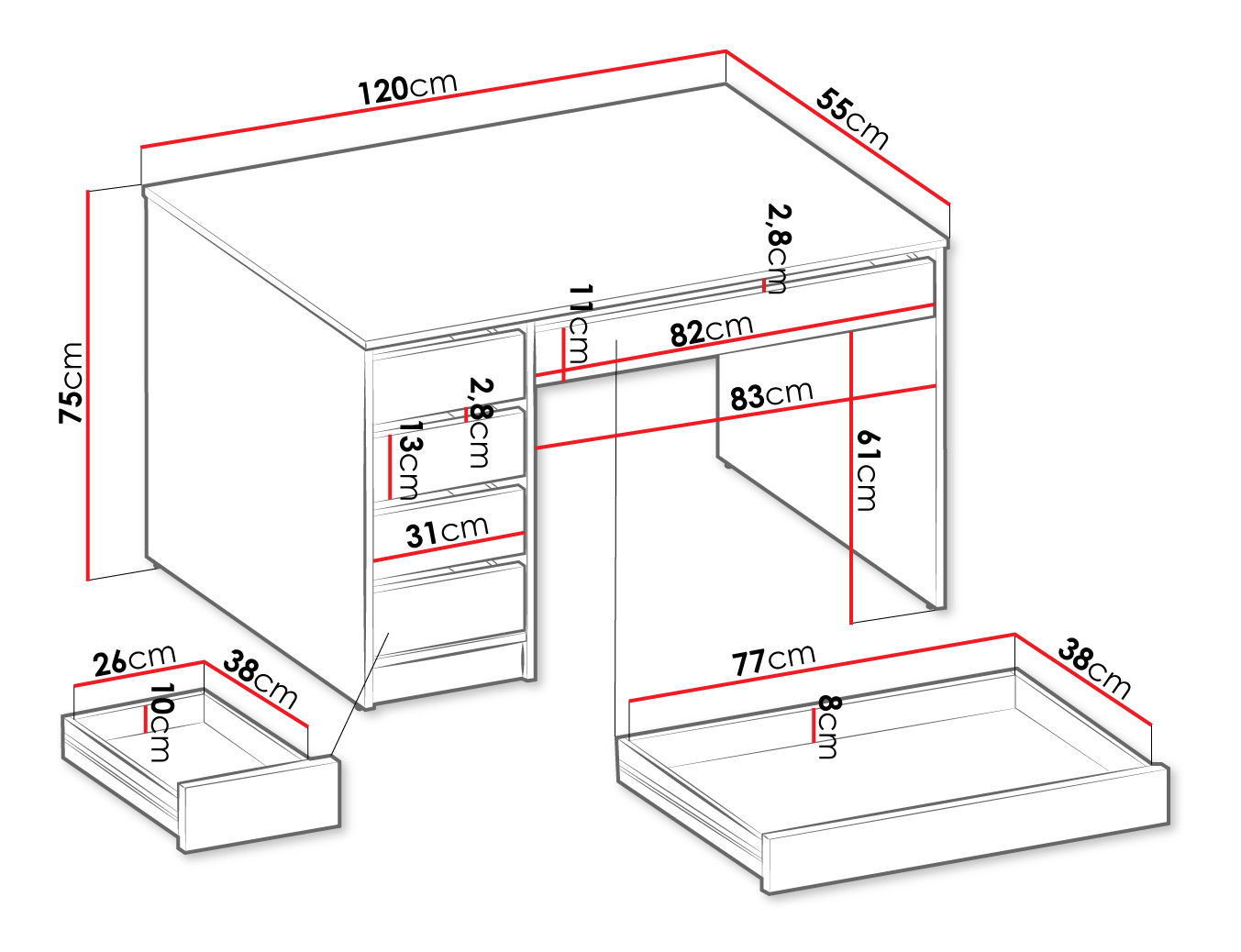 Heronje univerzální kus nábytku, který si najde své místo v dětském pokoji i v pracovně, kanceláři nebo ložnici. Můžete jej využít jako stůl atoaletní stolek.Jeho nadčasové barvy dokonale ladí s jakýmkoli designem.Tento nábytek je vybaven zásuvkami bez úchytů umístěnými na válečkových zásuvkových systémech, což usnadňuje otevírání a zavírání.Tento model je mimořádně univerzální. Je to v tom, že zásuvky můžete připevnit vlevo nebo vpravo - vy se rozhodnete kde by měly být!PC stůlbyl vyroben z dřevotřískové desky odolné proti vlhkosti a poškrábání, což zaručuje dlouhodobou spokojenost při používání.