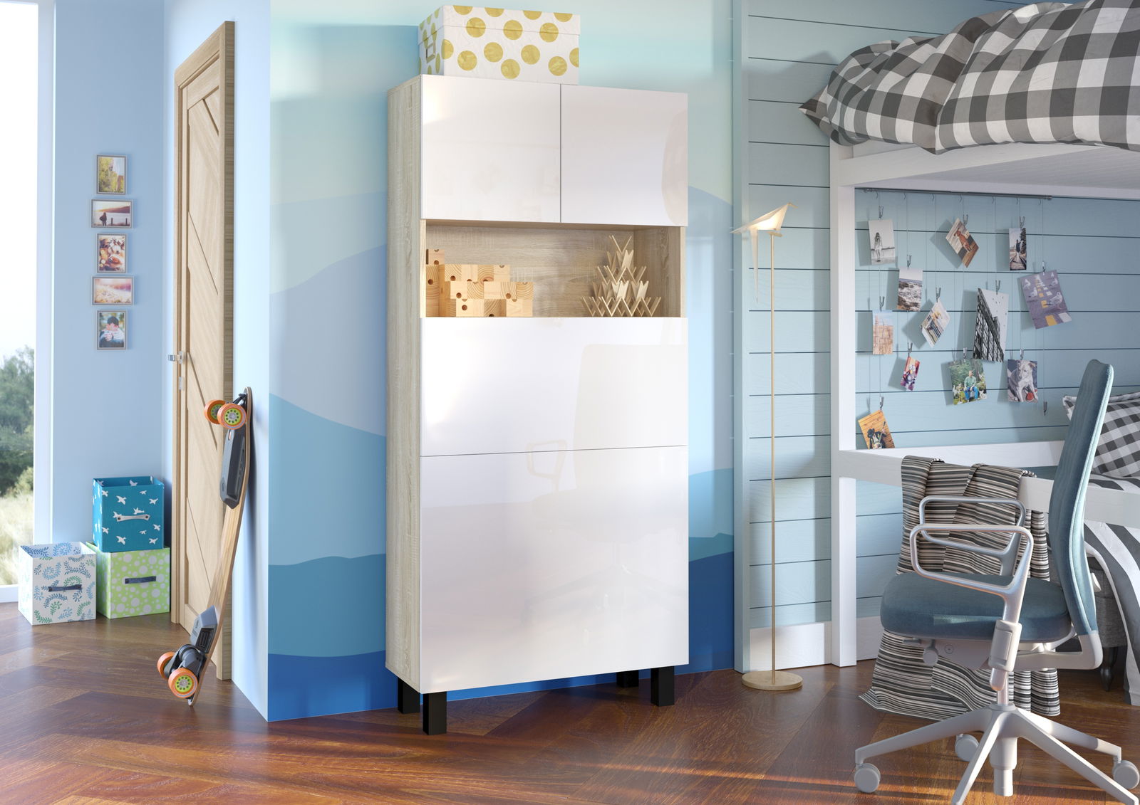 Bílý lesk + Dub sonoma