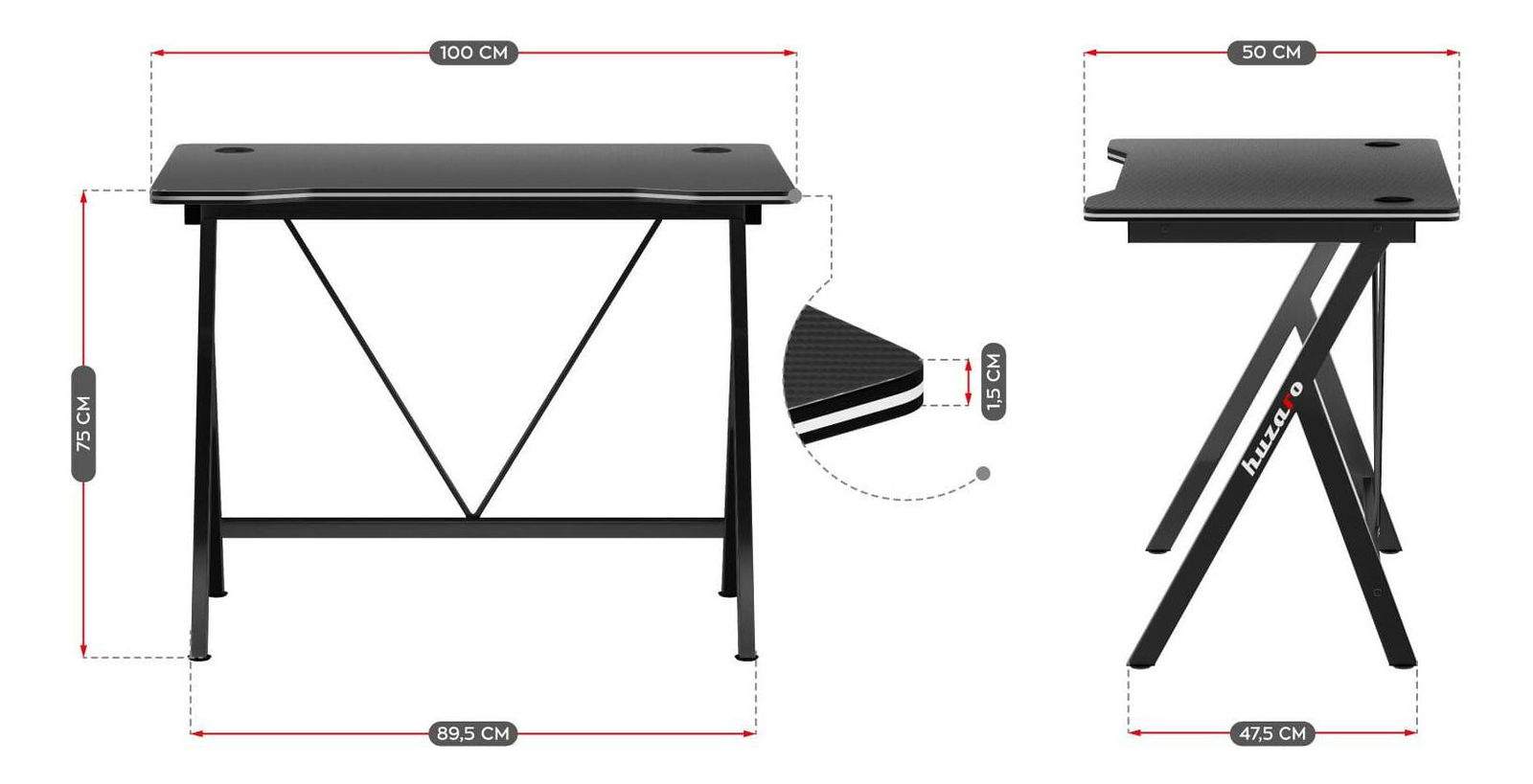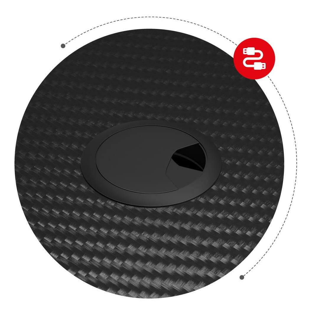 Malé rozměry, maximální komfort – bez ohledu na to, kolik místa máte, minimalistická forma psacího stolu se tam perfektně hodí. Vrchní vrstva imitující uhlíková vlákna vypadá skvěle a zároveň chrání desku stolu před poškrábáním a usnadňuje její udržování v čistotě. Zaoblené, ergonomické hrany stolové desky zaručují bezpečnost. Pevná stolová deska o tloušťce 15 mm vyrobená z odolné MDF desky zůstává stabilní i při velkém zatížení. Dva kabelové vstupy, umístěné na obou stranách stolu, umožňují snadné uspořádání kabelů. Osvědčená zesílená konstrukce zaručuje stabilitu a dlouhodobou odolnost.