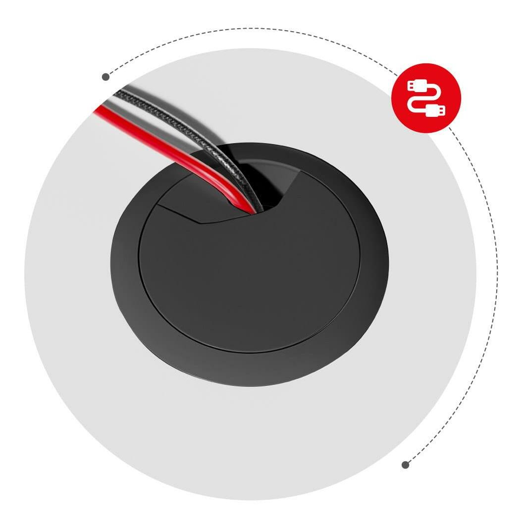 Díky opravdu herním řešením promění stůl každý interiér v herním velitelském centru. Pokud hledáte kus nábytku, který spojuje praktičnost s potěšením a zajímavým designem, jste na správném místě. Stolová deska o tloušťce 15 mm vyrobená z odolné MDF desky zajišťuje odolnost a stabilitu i při velmi vysokém tlaku. Tenký kovový rám zajišťuje nejen skvělý vzhled, ale především stabilitu a odolnost psacího stolu. Moderní design jde v tomto případě ruku v ruce s kvalitou zpracování i pevností a odolností v průběhu času. Stůl má nastavitelné nožičky, které zajistí, že stůl bude stát vždy rovně a stabilně bez ohledu na nerovnosti podlahy. Vstupy symetricky umístěné na obou stranách pracovní desky usnadňují organizaci celé počítačové pracovní stanice. S jejich pomocí můžete pohodlně uspořádat všechny kabely tak, aby se vám nezamotaly na prkně nebo pod nohama.