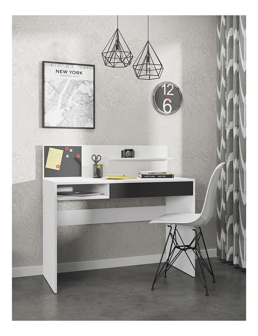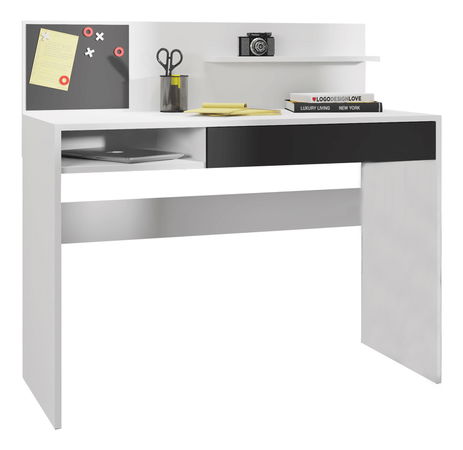 PC stolek Irun je ideální řešení pro každého, kdo hledá funkční a praktický stolek pro svůj počítač. Vysoká konstrukce o výšce 103 cm a hloubka 50 cm zajišťuje dostatečně velký prostor pro pohodlnou práci. Stolek je vyroben z laminované DTD a má bílou/černou barvu. Rozměry 110x50x103 cm, se zásuvkou, magnetickou tabulí a policí, otevřeným úložným prostorem a dodává se v demontu. Díky svým praktickým funkcím a modernímu designu je PC stolek Irun skvělým doplňkem do každé moderní kanceláře nebo pracovny.