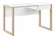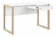 Pomocí tohoto bílého psacího stolu dodáte své domácí kanceláři skandinávskou atmosféru. Je vyroben z odolné a snadno udržovatelné dřevotřískové desky, nevyžaduje každodenní údržbu a přesto si zachová svůj jedinečný vzhled. Kromě toho, že má dlouhou životnost, je vybaven také prostornou zásuvkou, do které si budete moci odložit dokumenty a jiné důležité předměty. Zpestřením celého designu je skleněná stolová deska, která poutá pozornost a stolu dodává moderní nádech.