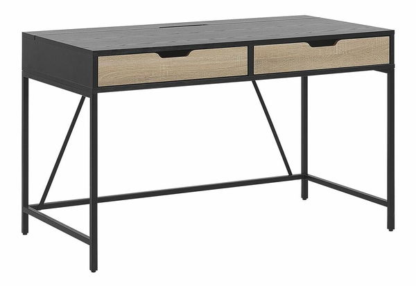 Doplňte svoji domácí kancelář praktickým kouskem, který prostoru dodá funkčnost i jedinečný charakter. Tento stůl je vyroben z dřevotřísky, díky čemuž je odolný, pevný a nenáročný na údržbu. Stabilitu celé konstrukce zajišťuje kovová podnož, která barevně ladí s vrchní deskou. Stůl je vybaven také dvěma zásuvkami, které poskytují dostatek úložného prostoru na veškeré kancelářské příslušenství.