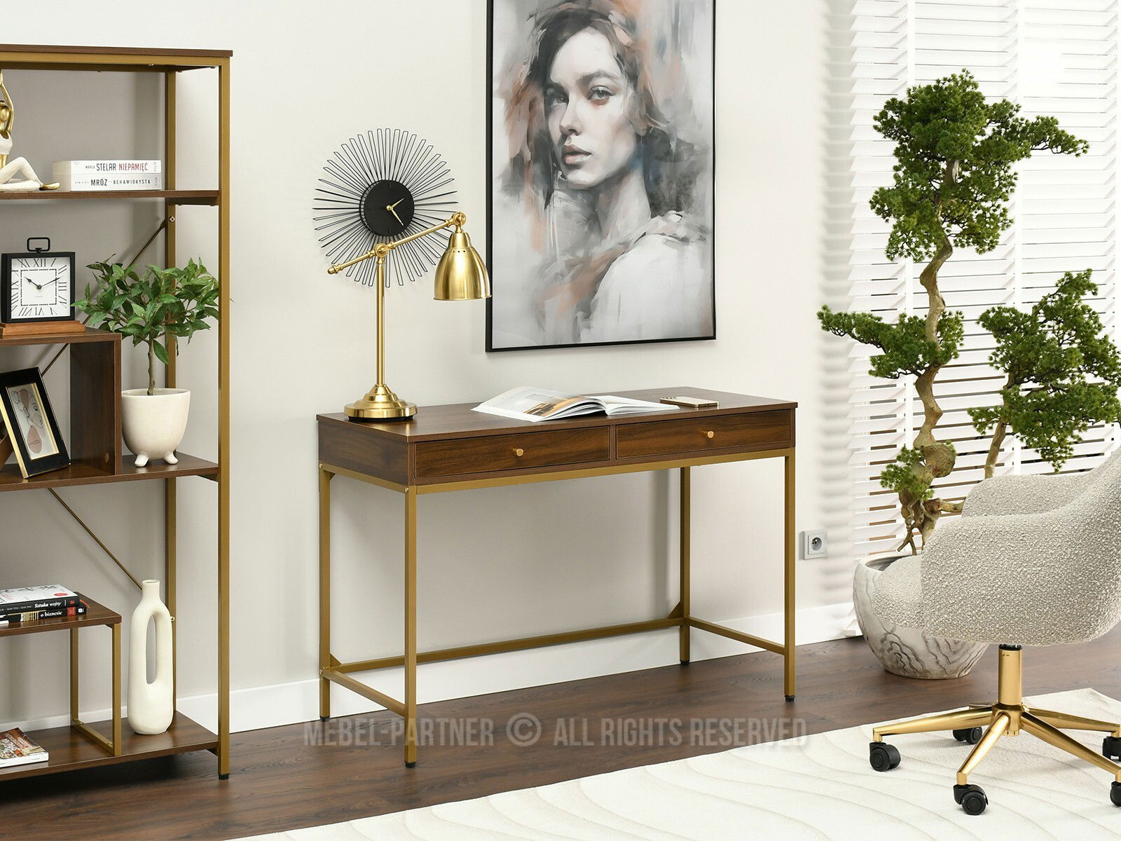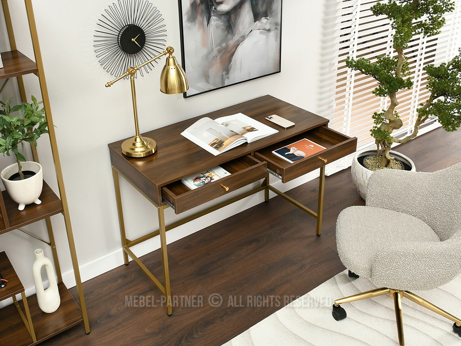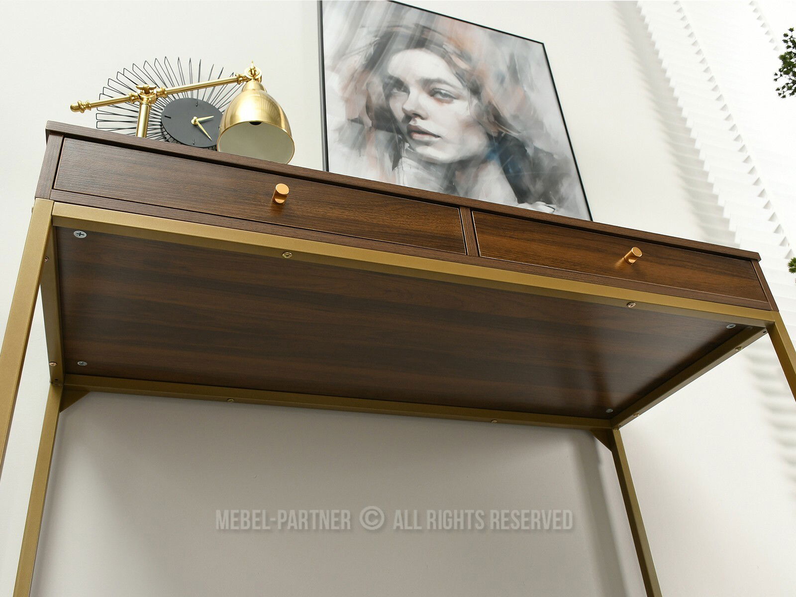 PC stolek Kaplan (ořech + zlatá)
