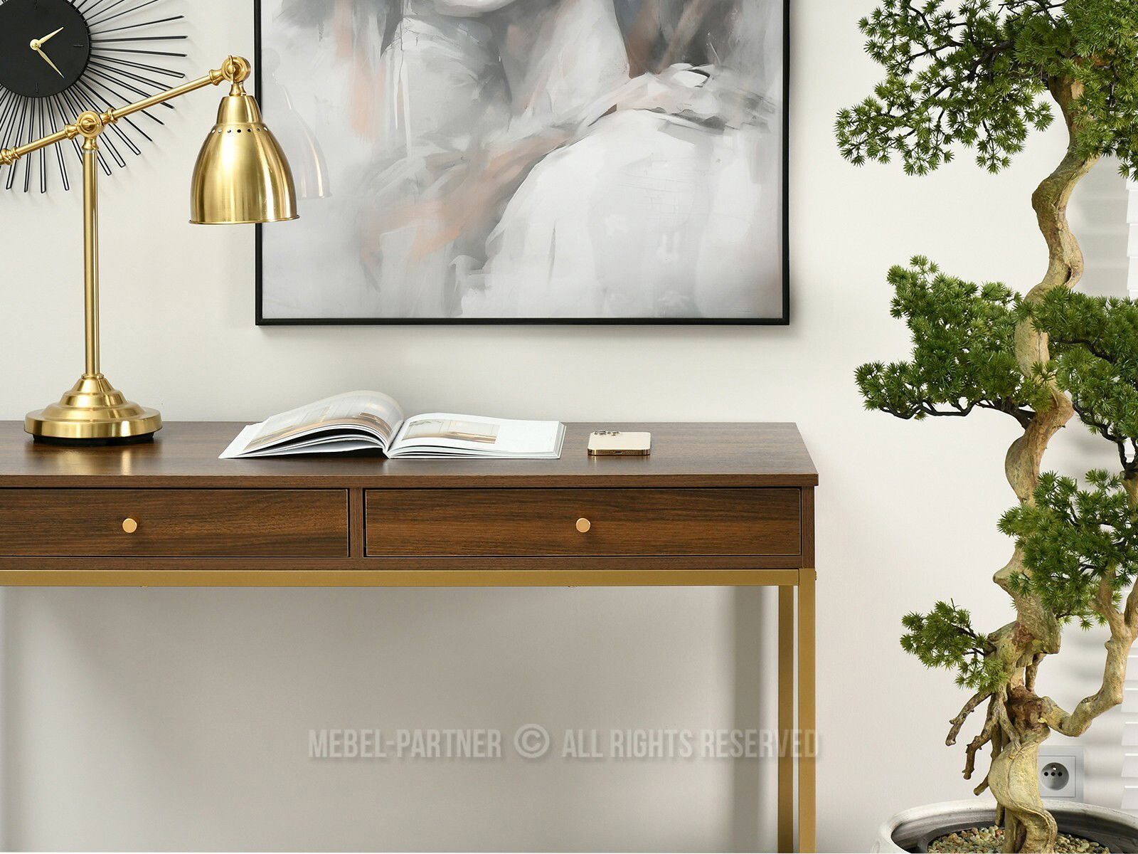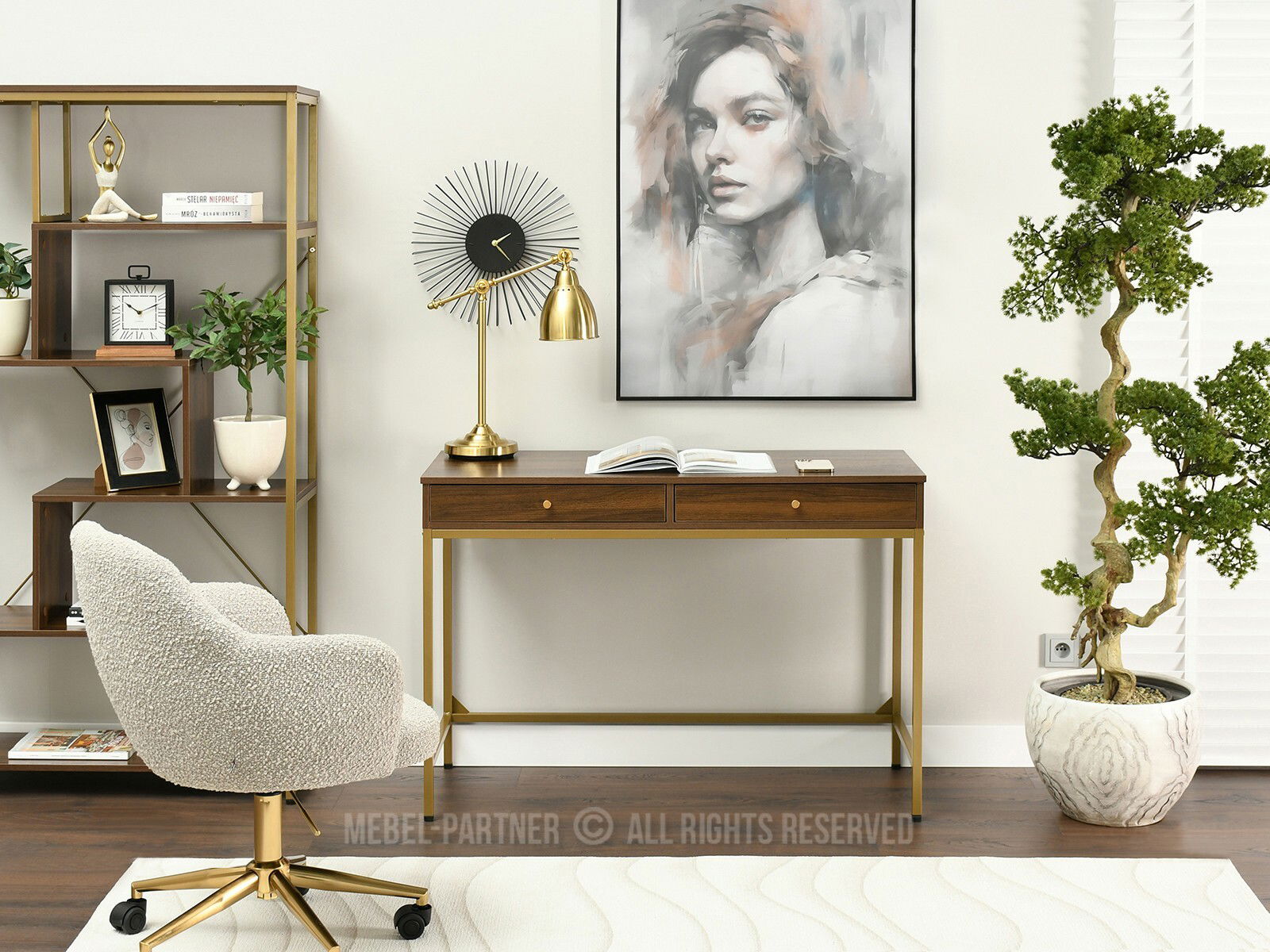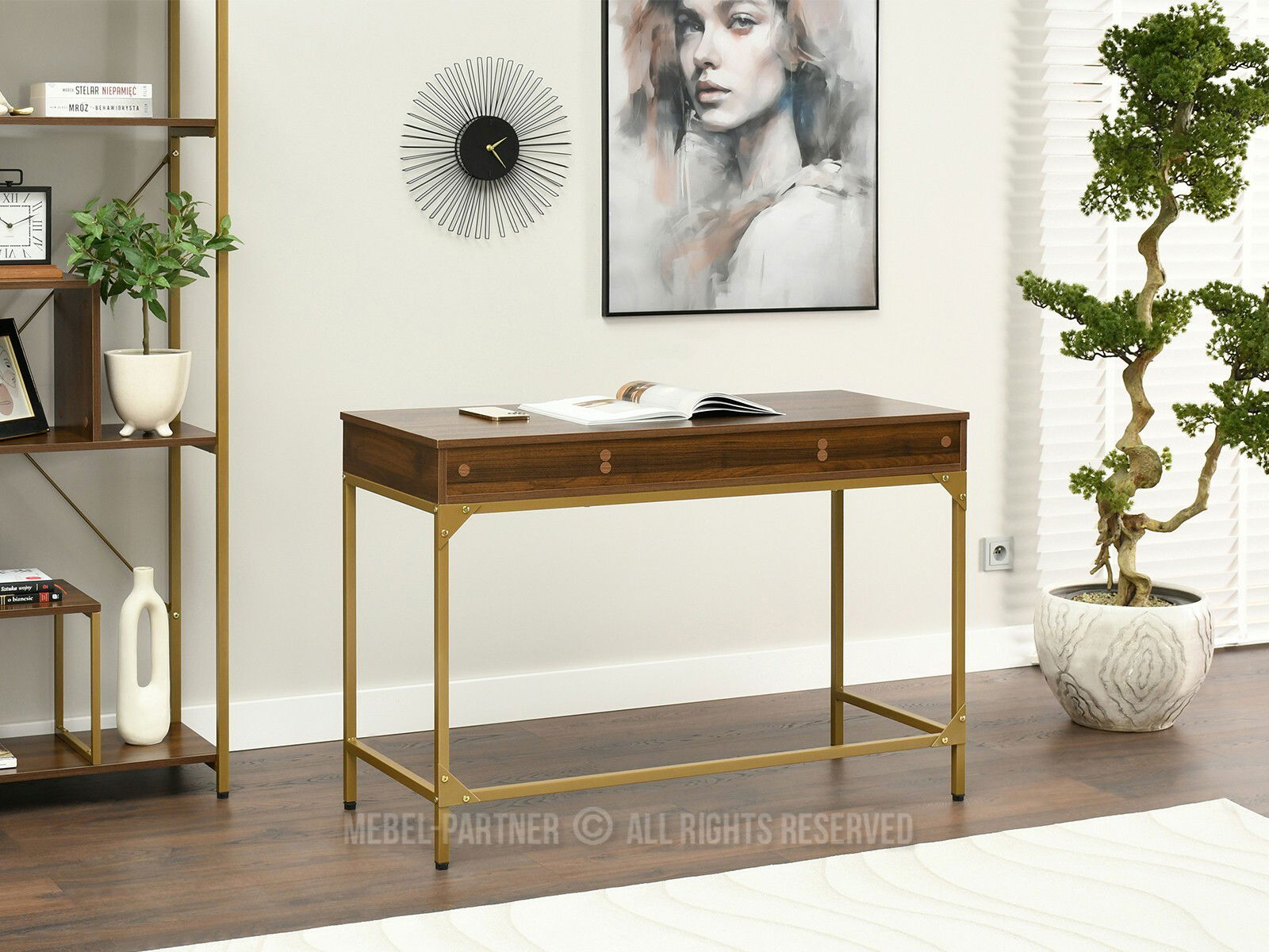 PC stolek Kaplan (ořech + zlatá)