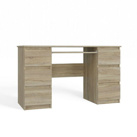 ZobrazitPC stolek Kwazulu 1 v elegantní barvě dub sonoma je ideálním řešením pro každou pracovní plochu, ať už v domácnosti, kanceláři nebo studentském pokoji. Jeho moderní a minimalistický design s bezúchytkovými frontami se skvěle hodí do různých interiérů. S šesti prostornými zásuvkami nabízí dostatek místa pro uskladnění dokumentů a kancelářských potřeb, zatímco vysouvací police na klávesnici zajišťuje ergonomické používání. Stabilní konstrukce z laminované dřevotřísky je odolná vůči poškrábání a snadno se udržuje, což zaručuje dlouhou životnost tohoto praktického nábytku.